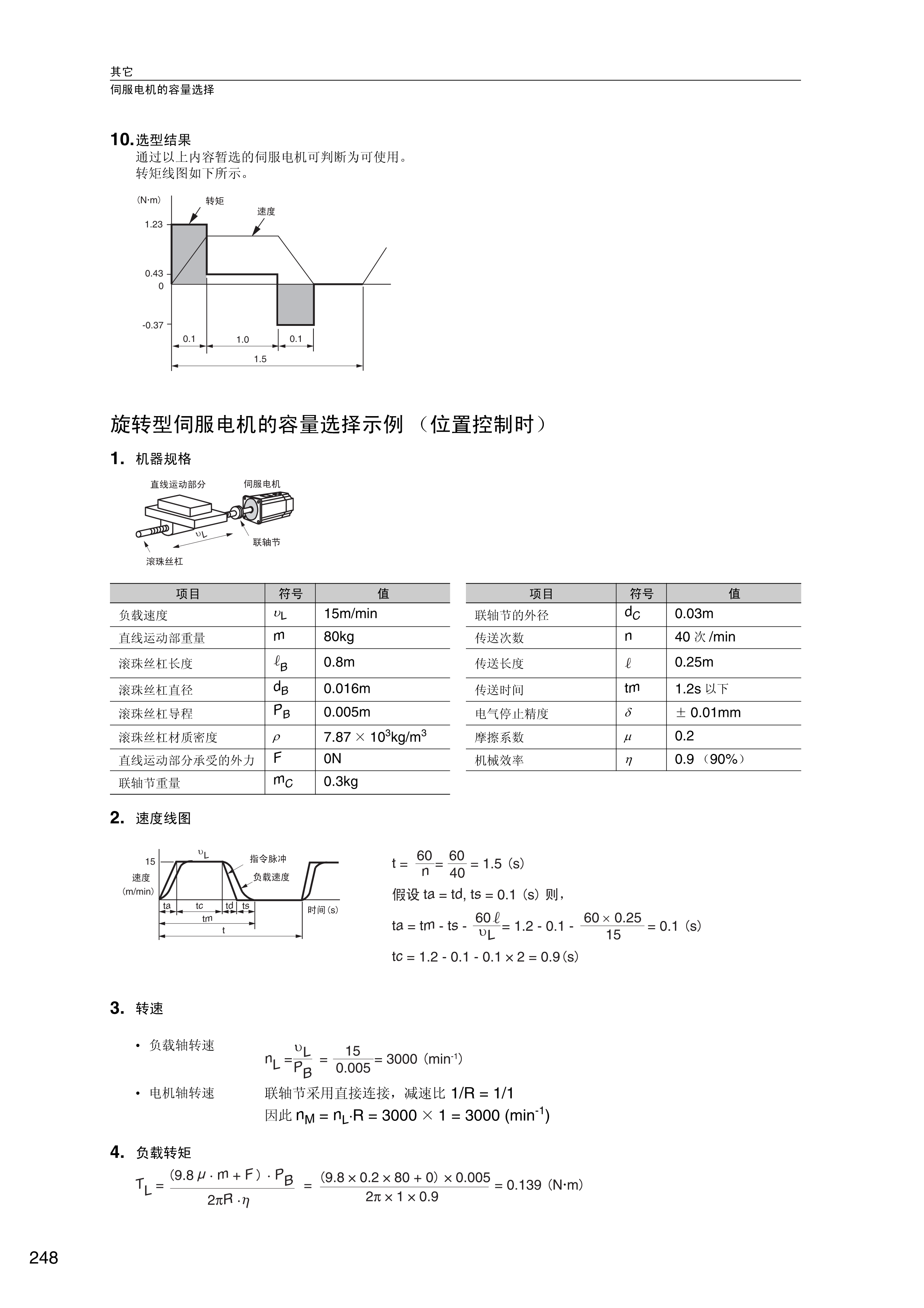 FX安川伺服电机 10,选型结果 旋转型伺服电机的容量选择示例;1,机器规格 2,速度线图 3,转速 4,负载转速