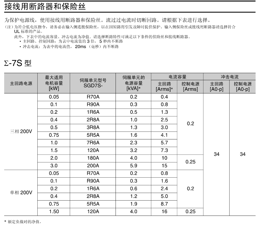 FX安川伺服电机 接线用断路器和保险丝