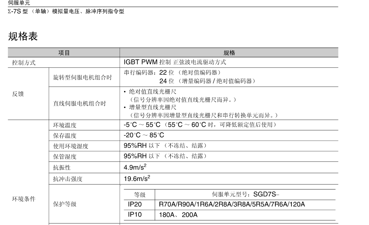 FX安川伺服电机 规格表3 伺服单元,模拟量电压,脉冲序列值令型