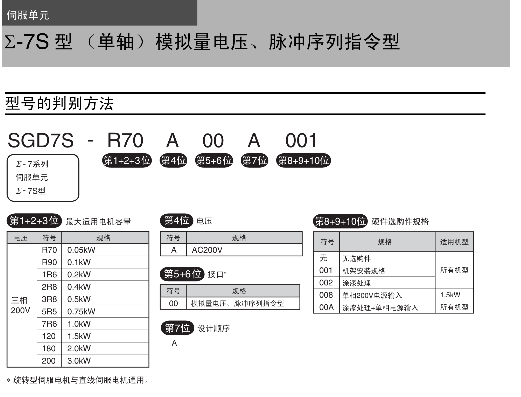 FX安川伺服电机 型号的判别方法,伺服单位,模拟量电压,脉冲序列值令型