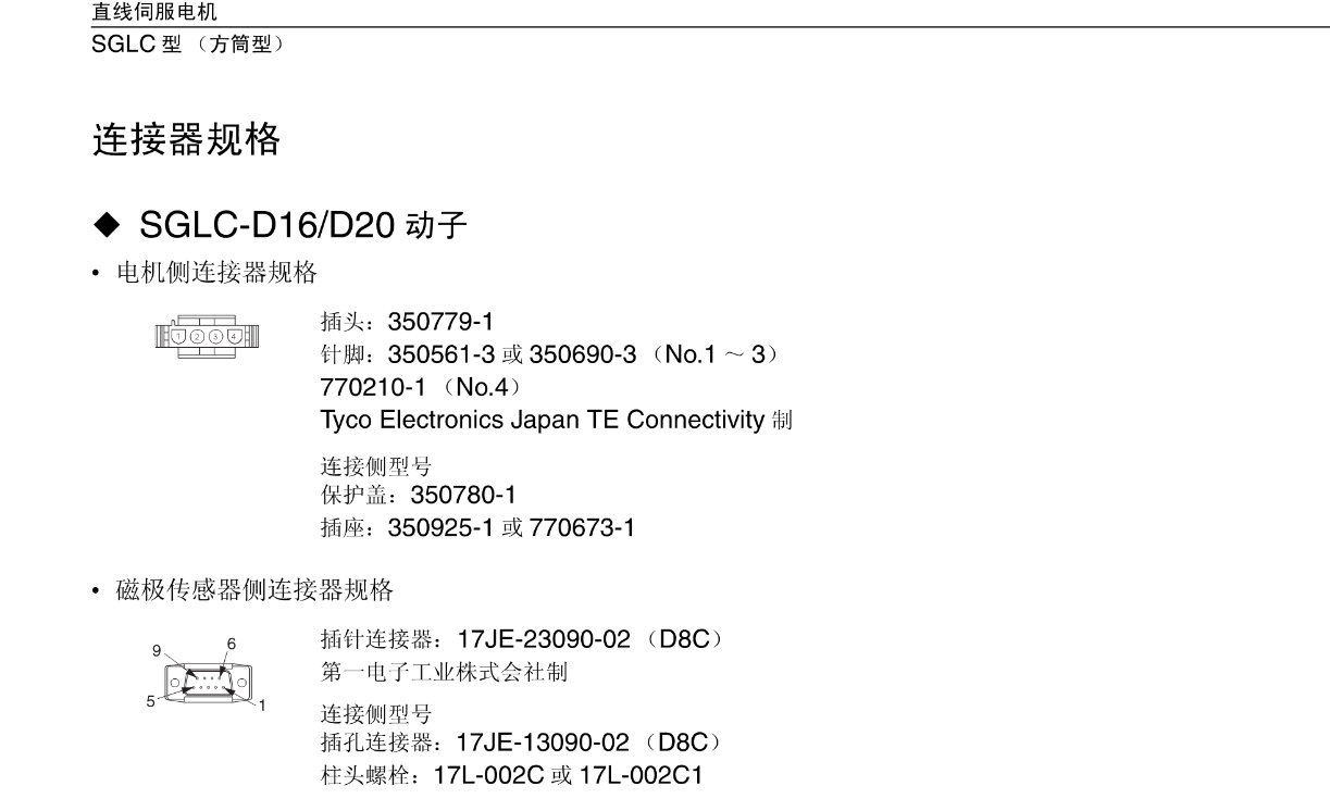 FX安川伺服电机 连接器规格,直线伺服电机,SGLC型【方筒型】,SGLC-D16/D20动子,SGLC-D25/D32动子