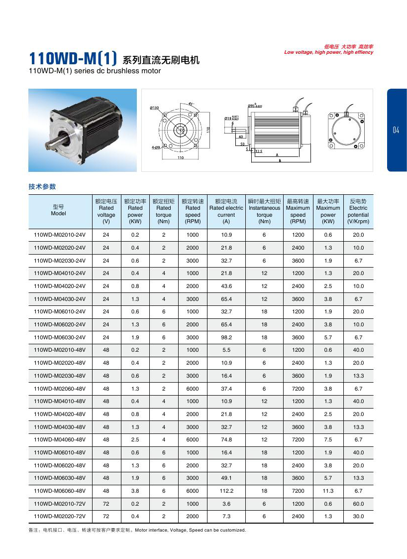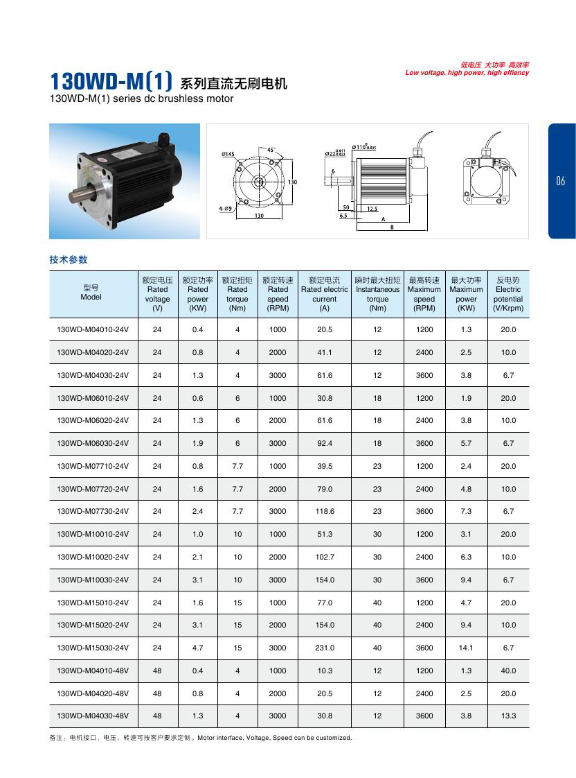 电机的选型参数以及图纸