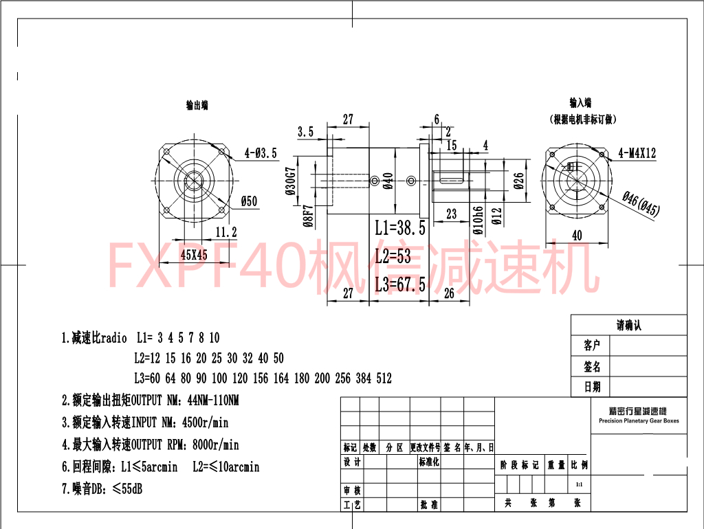 二级速比:12:1、15:1、16:1、20:1、25:1、28:1、35:1、40:1、50:1、70:1