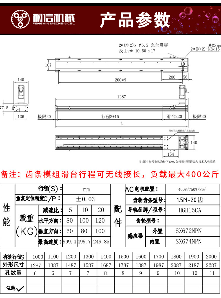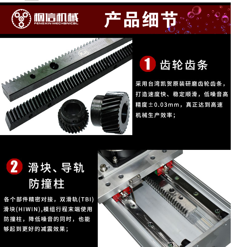 垂直升降齿条滑轨数控电动线性模组齿轮齿条高负载高精度滑台模组