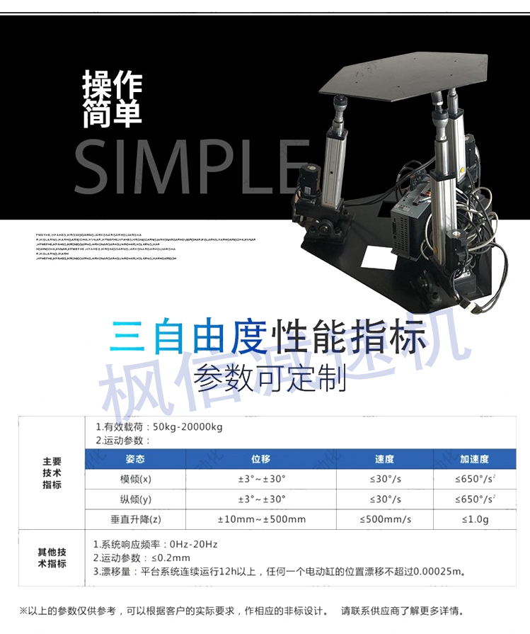 六自由度运动平台飞行模拟平台最大负载500KG行程250mm含电子狗