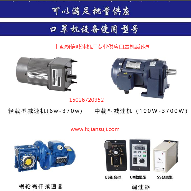 在目前全国口罩生产线纷纷上马的当下,很多零部件供应极为紧张,价格飞涨,枫信机电一直努力确保减速机供应平稳,没有成为当下全国众多口罩自动化生产线研发生产企业的制约因素。我们生产的口罩机械减速机,小批量可以现货供应,联系电话:15026720952(许先生)。