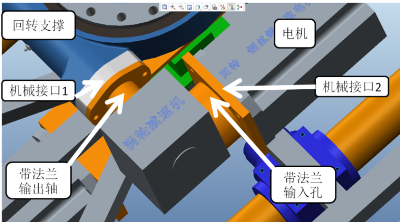 减速器与电机安装布置、与回转支撑安装布置如图1所示。