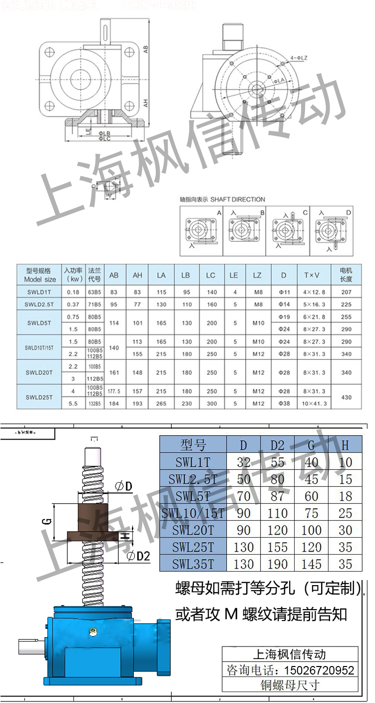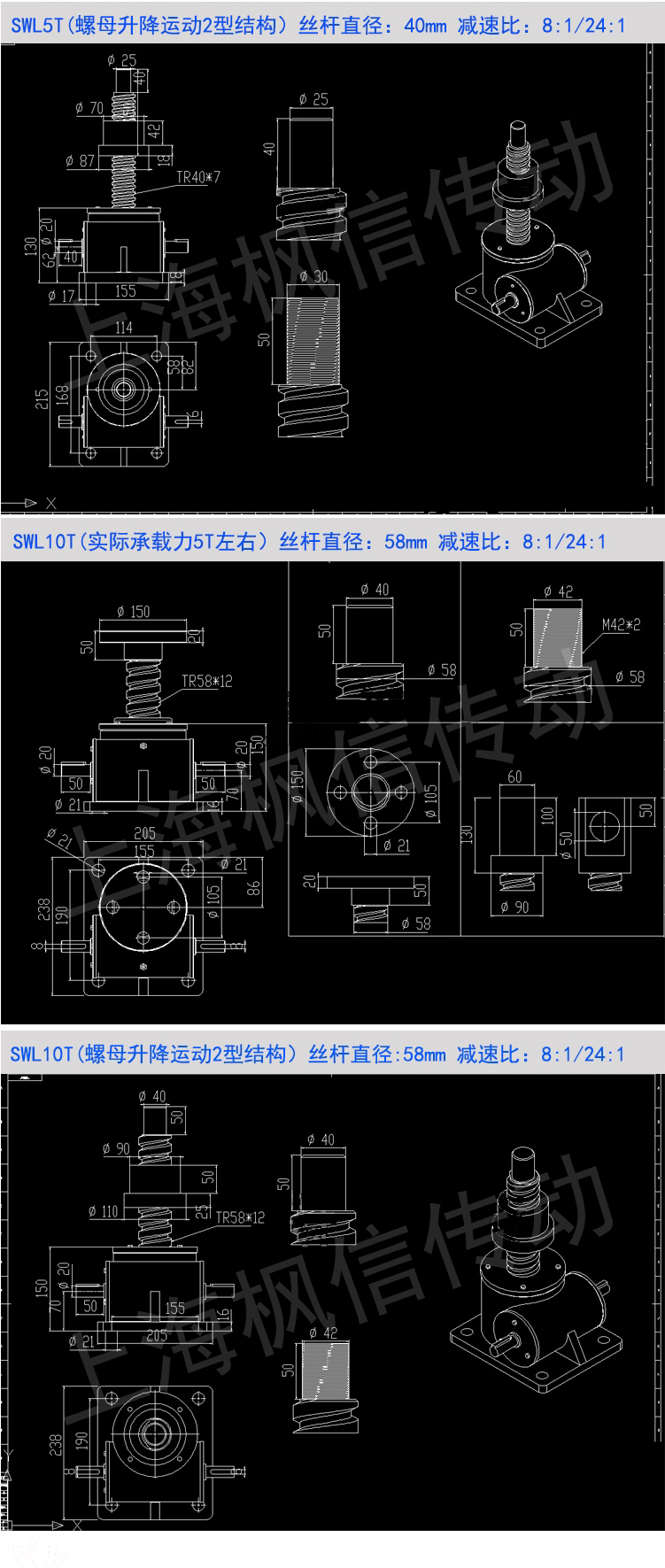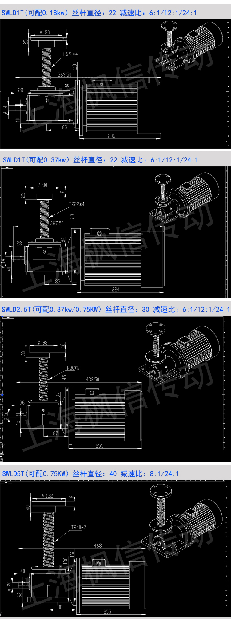 SWL蜗轮丝杆升降机配T系列螺旋锥齿轮减速机