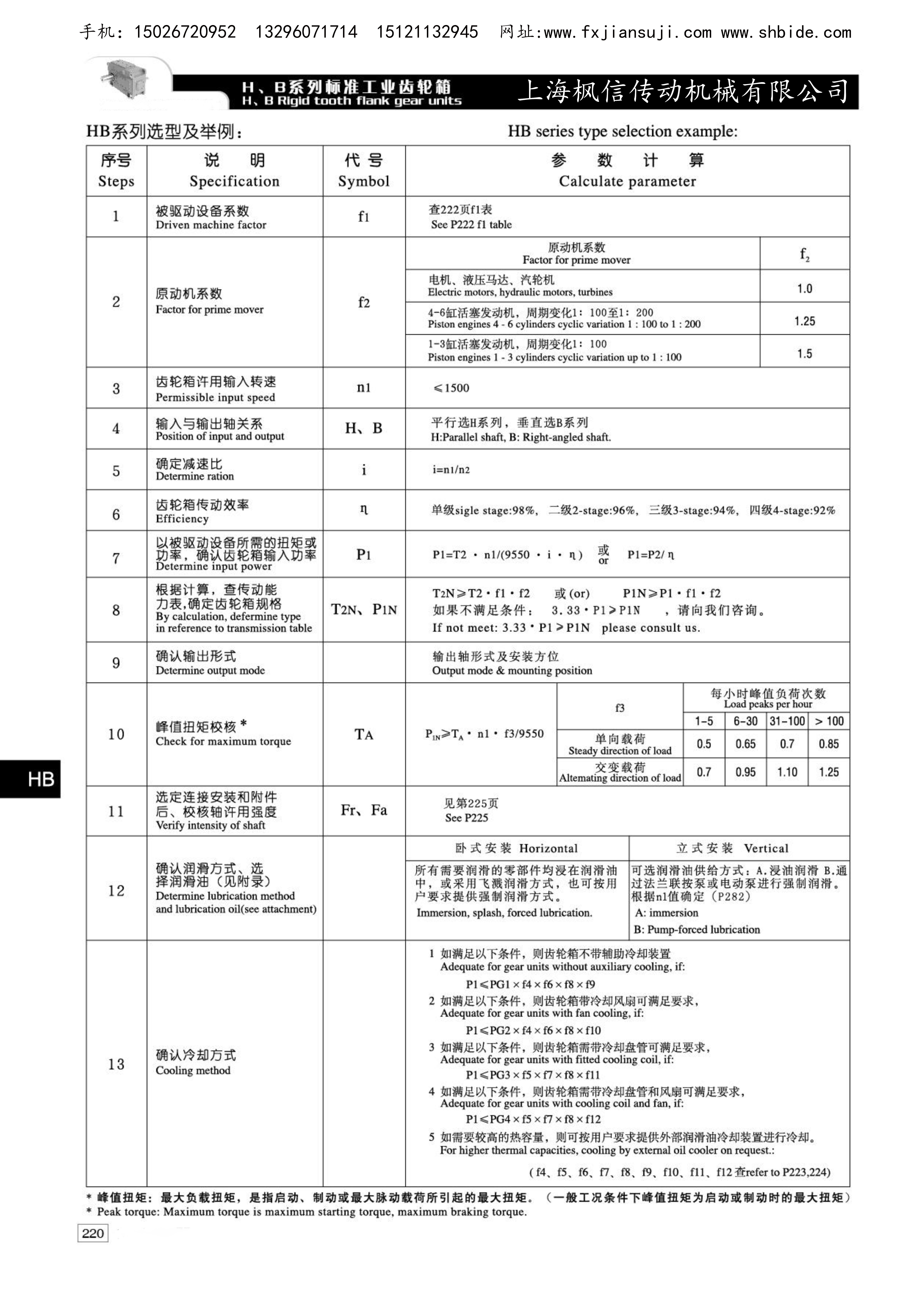 - FXHB系列减速箱选型指南 TB, TH series Gear Units Guidelines for the Selection