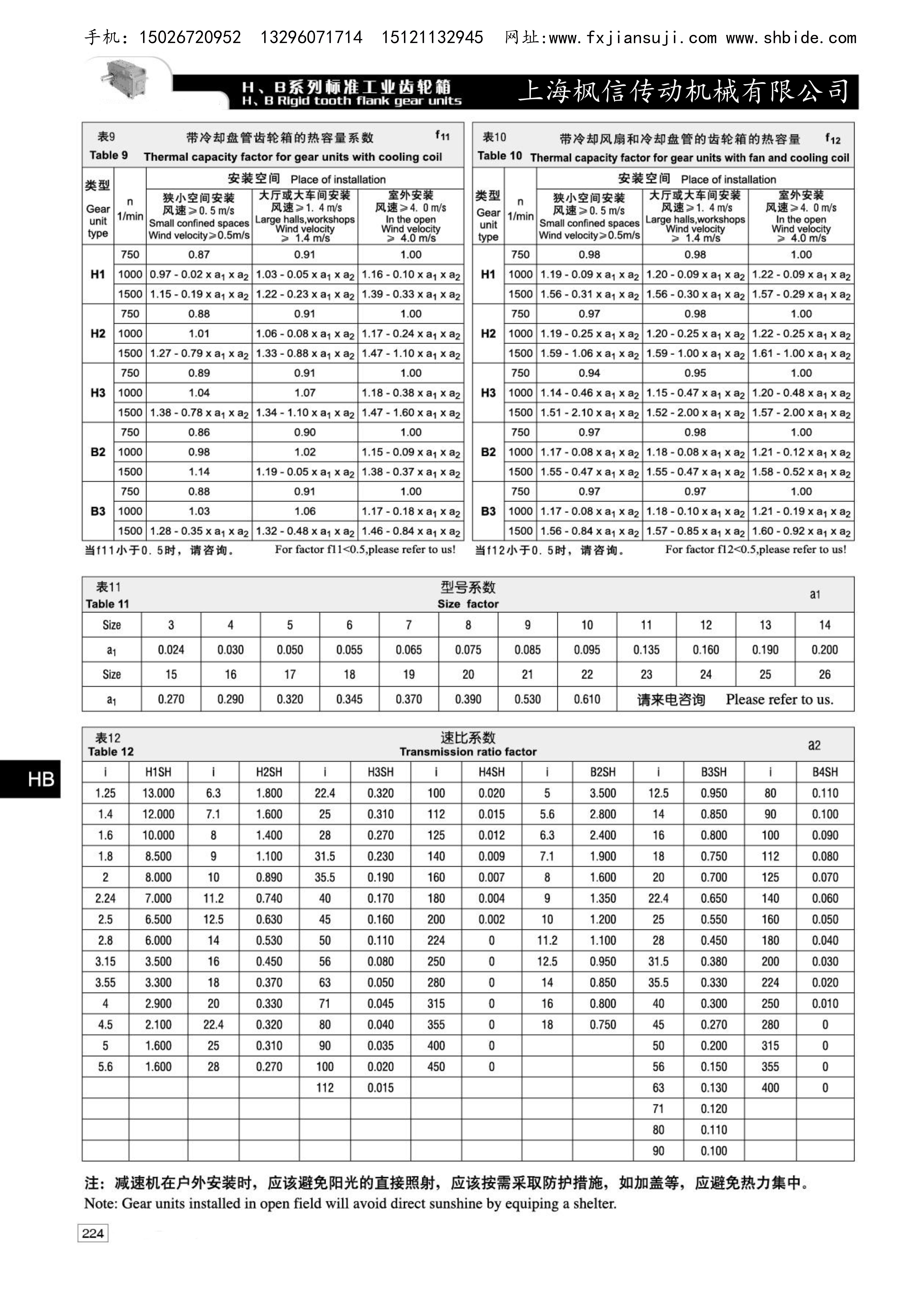 - H,B系列标准工业齿轮箱。H,B系列选型,环境温度系数,海拔高度系数,齿轮箱供油系数,带冷却风扇装置热容量系数,不带辅助冷却装置热容量系数