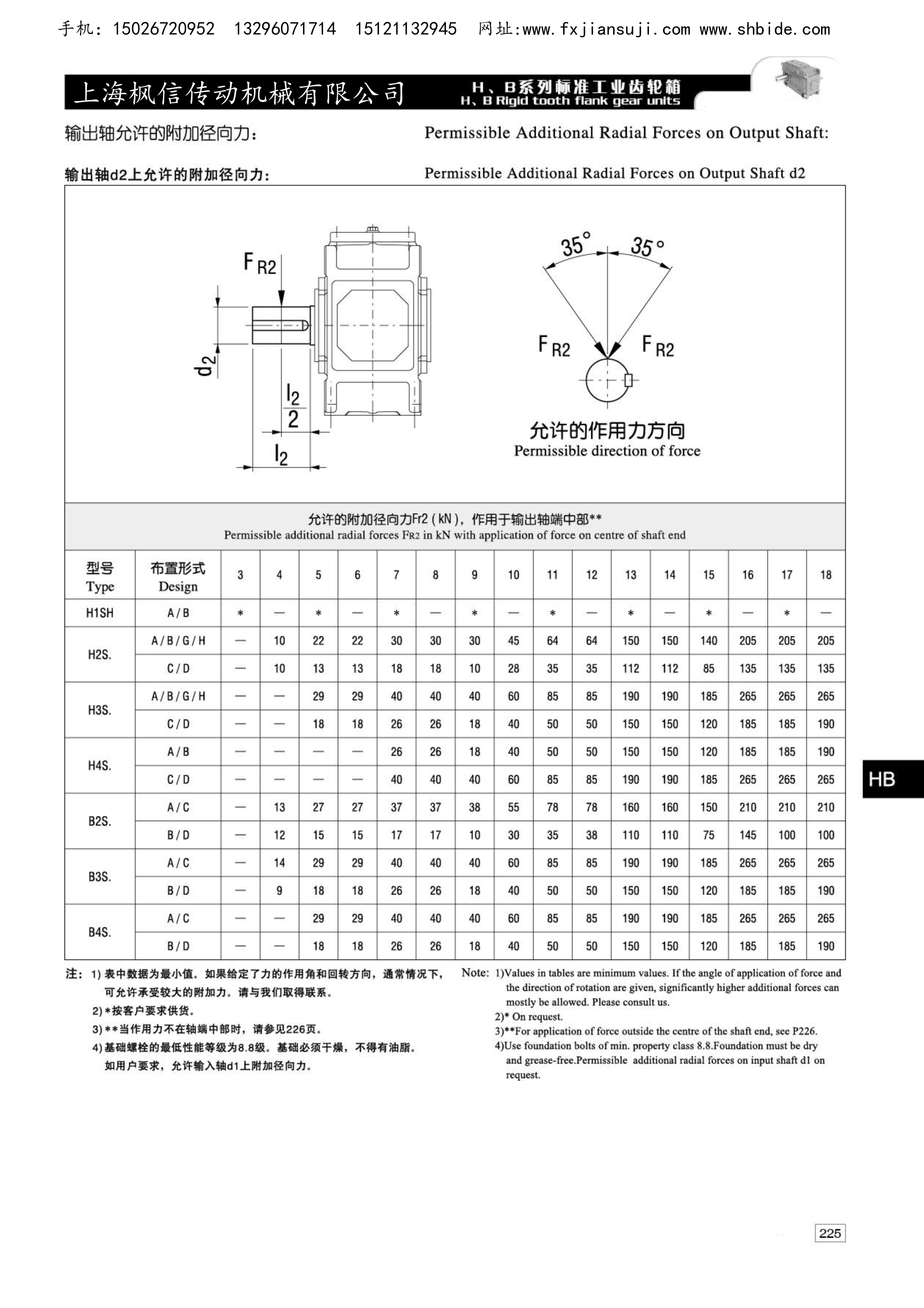 - FXHB减速器 Gear Units 输出轴d上许用附加径向力 Permissible Additional Radial Forces on OutputShaft d