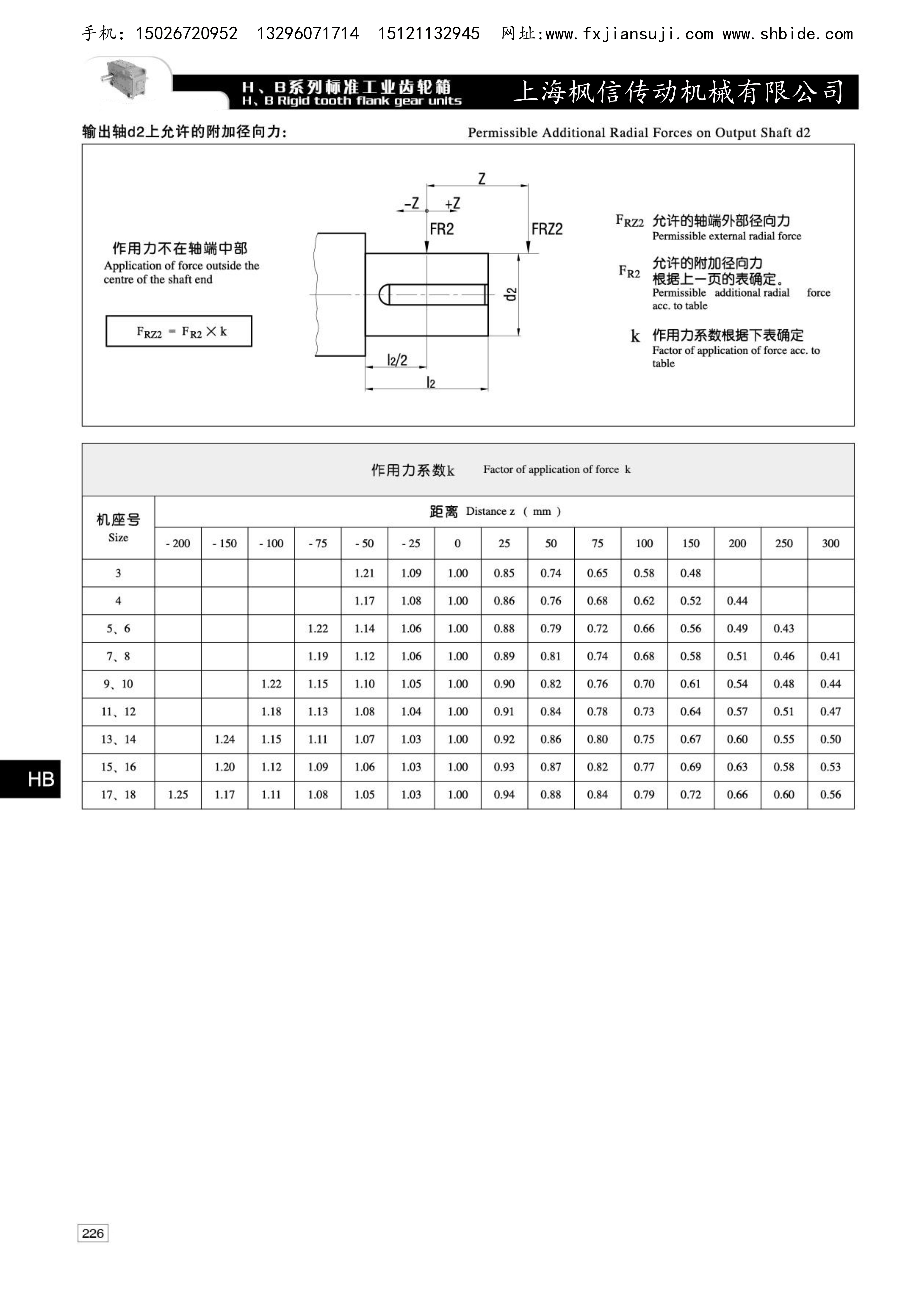 - FXHB选型参数表 Selectio Table 作用力系数K Factor of application of force K系列大功率工业齿轮箱