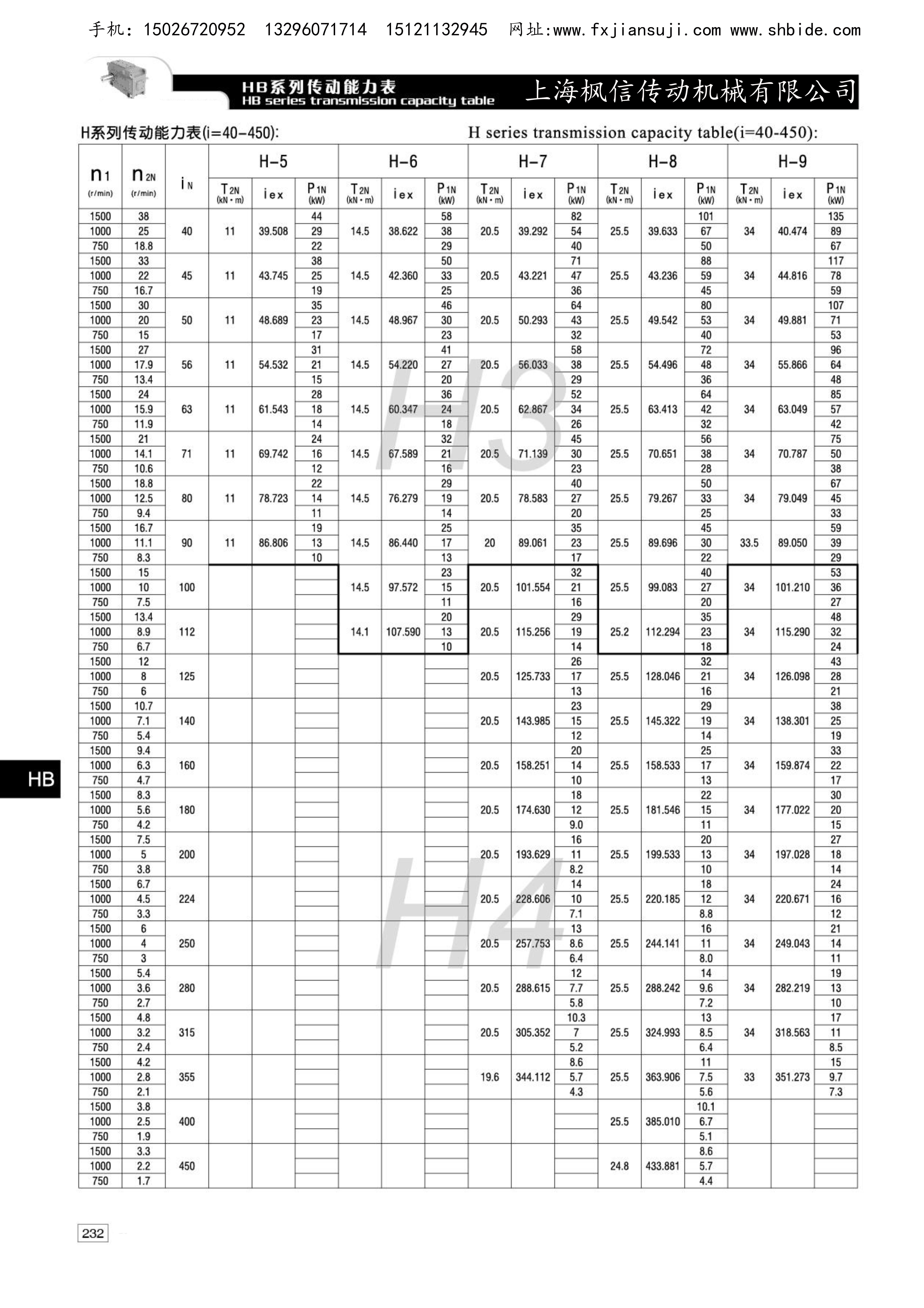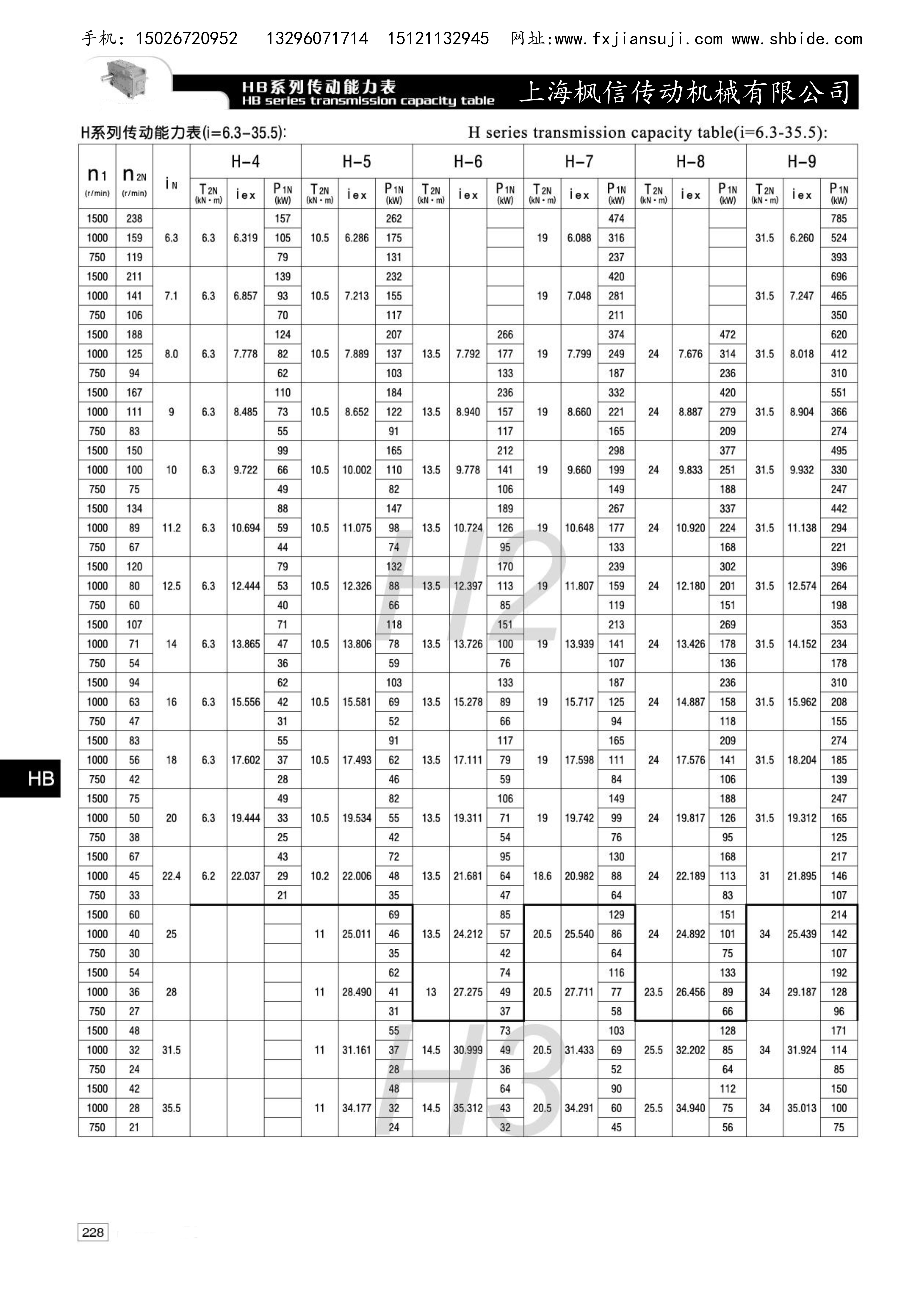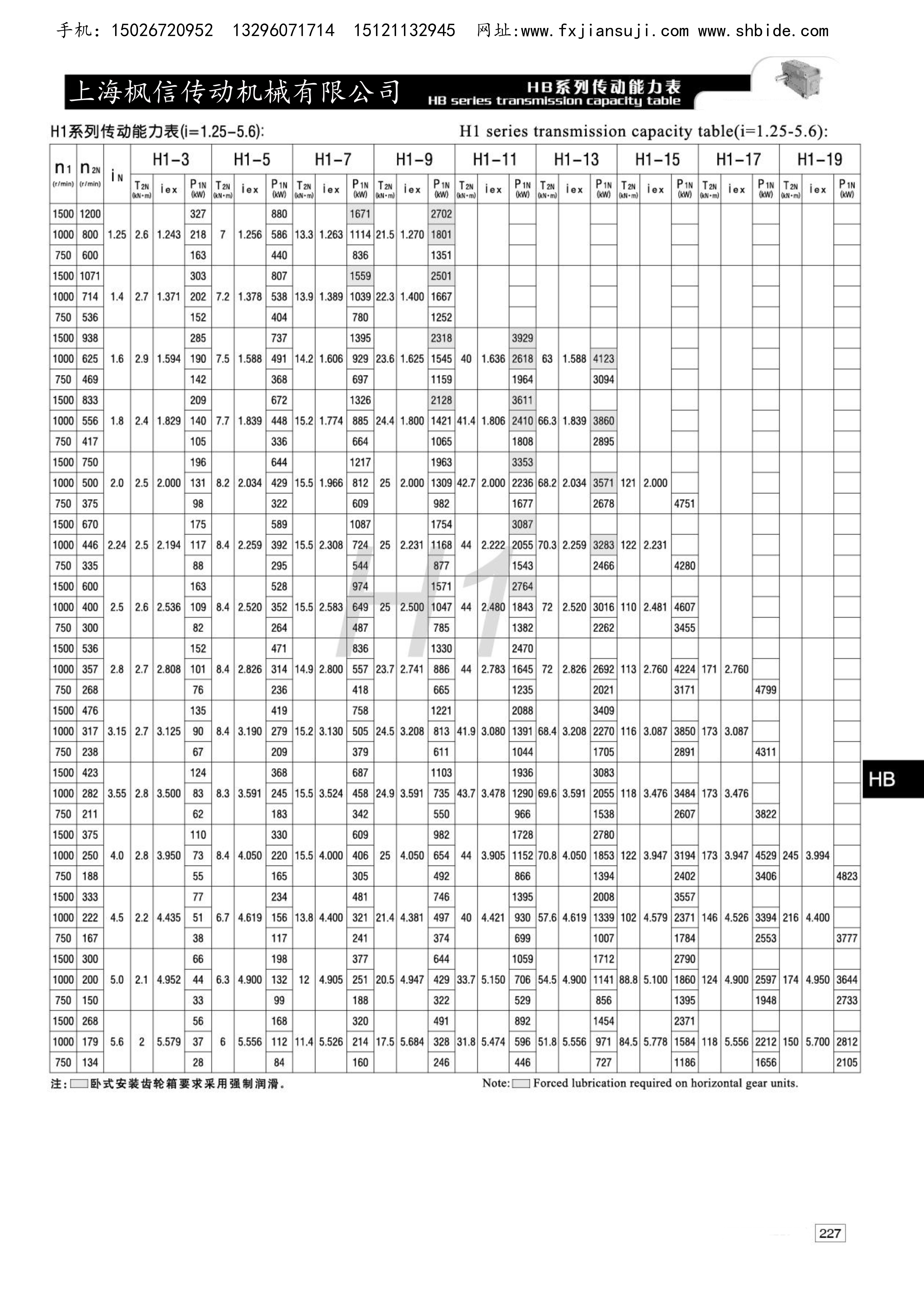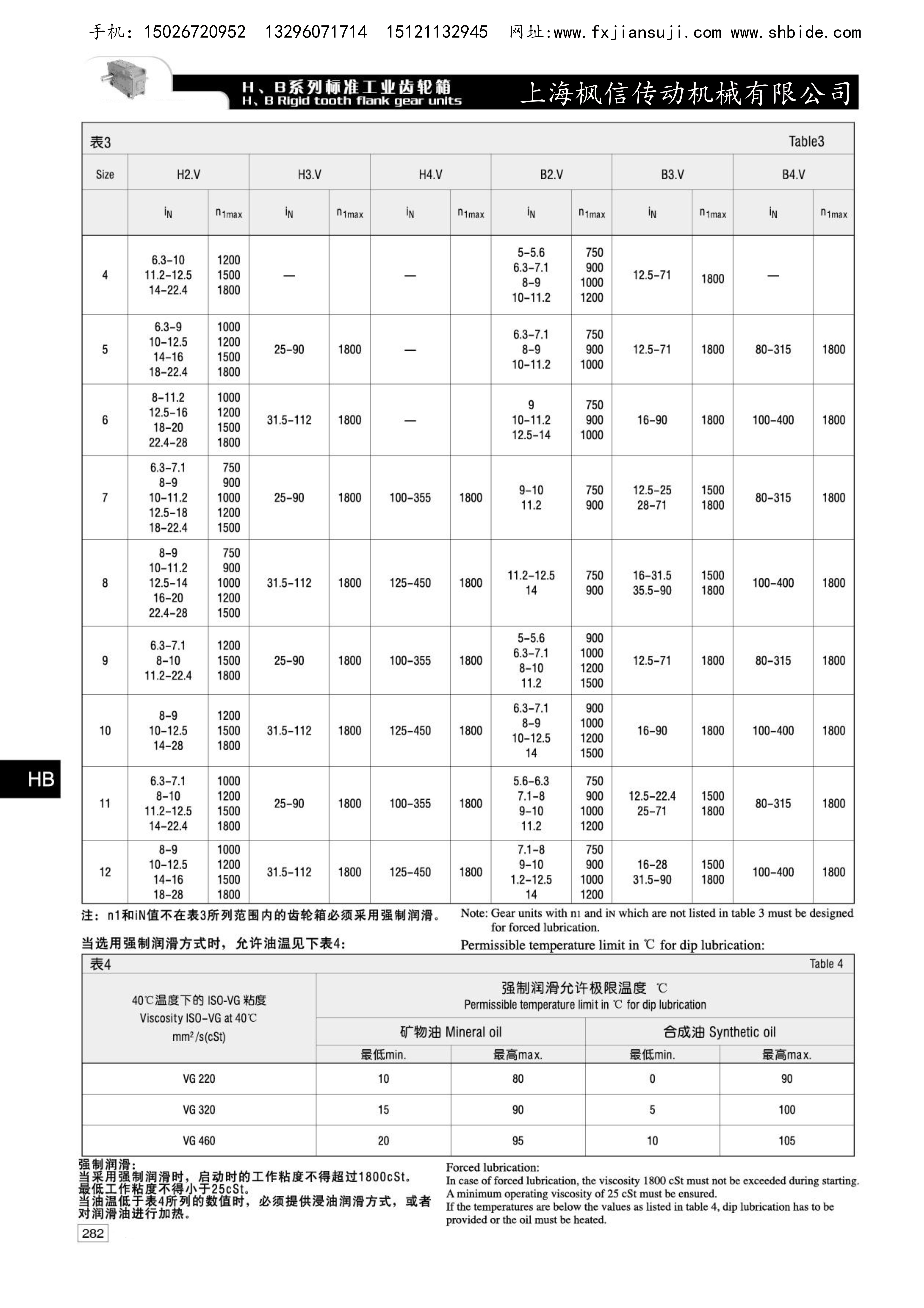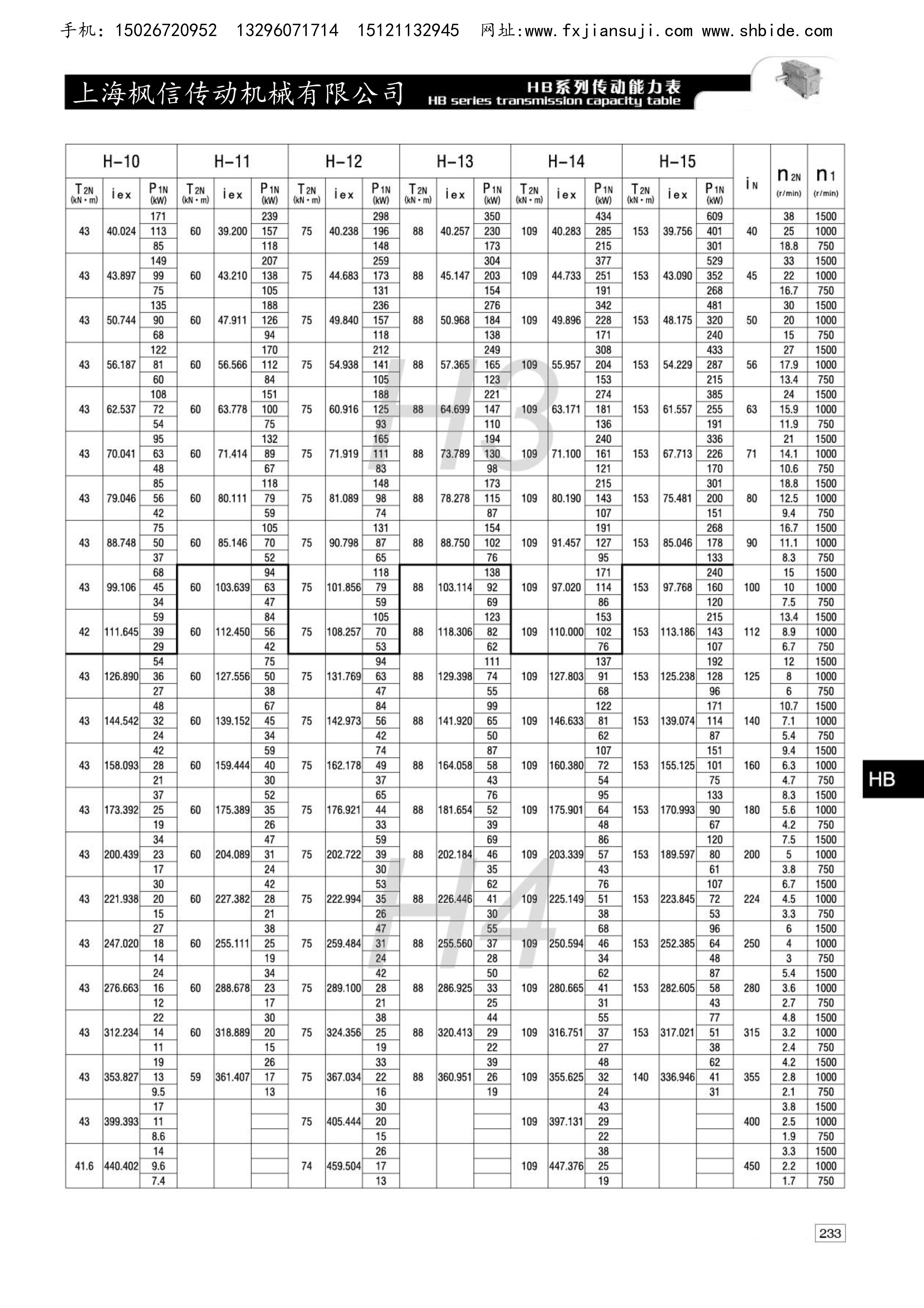 - H,B系列标准工业齿轮箱。 H系列传动能力表