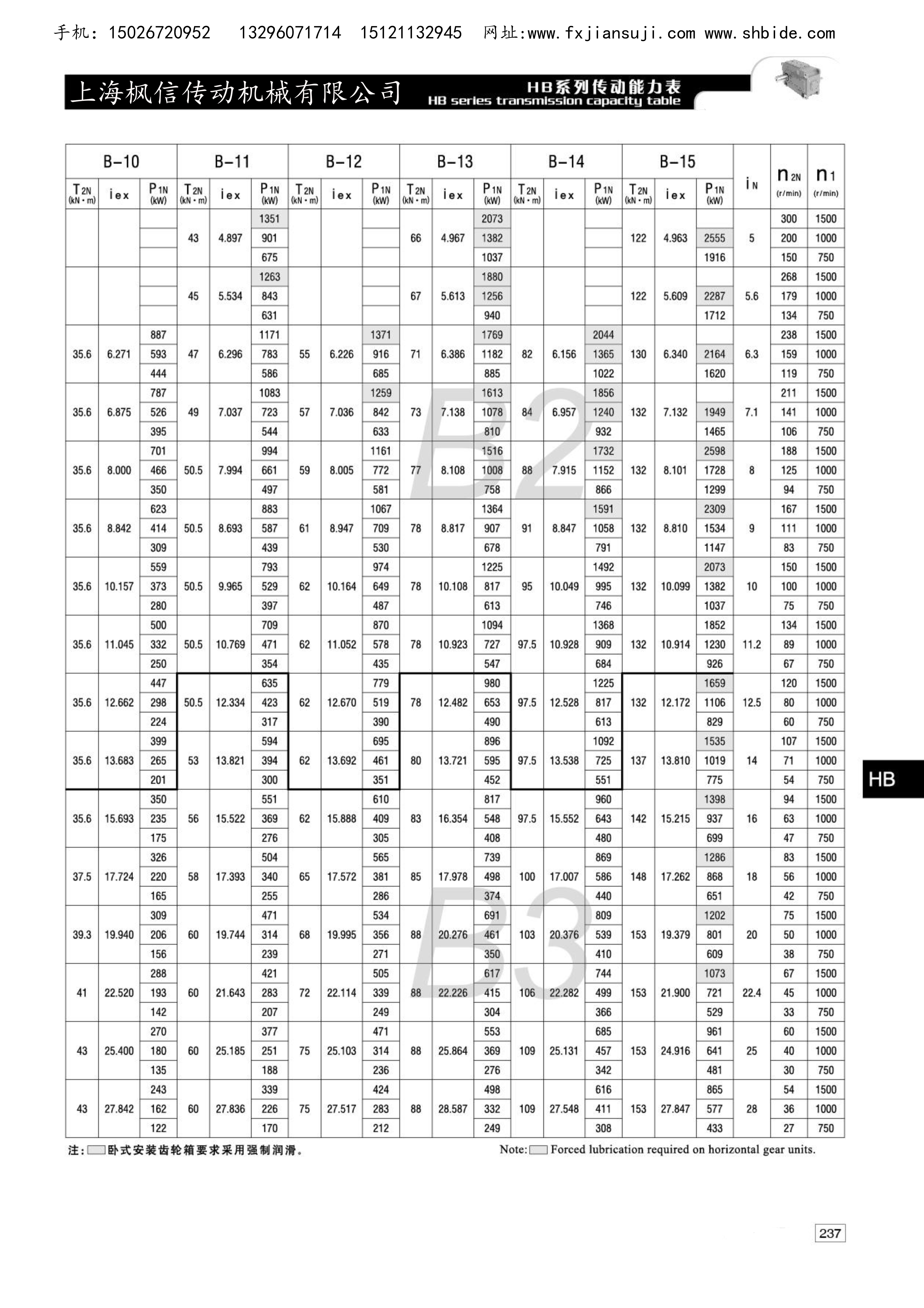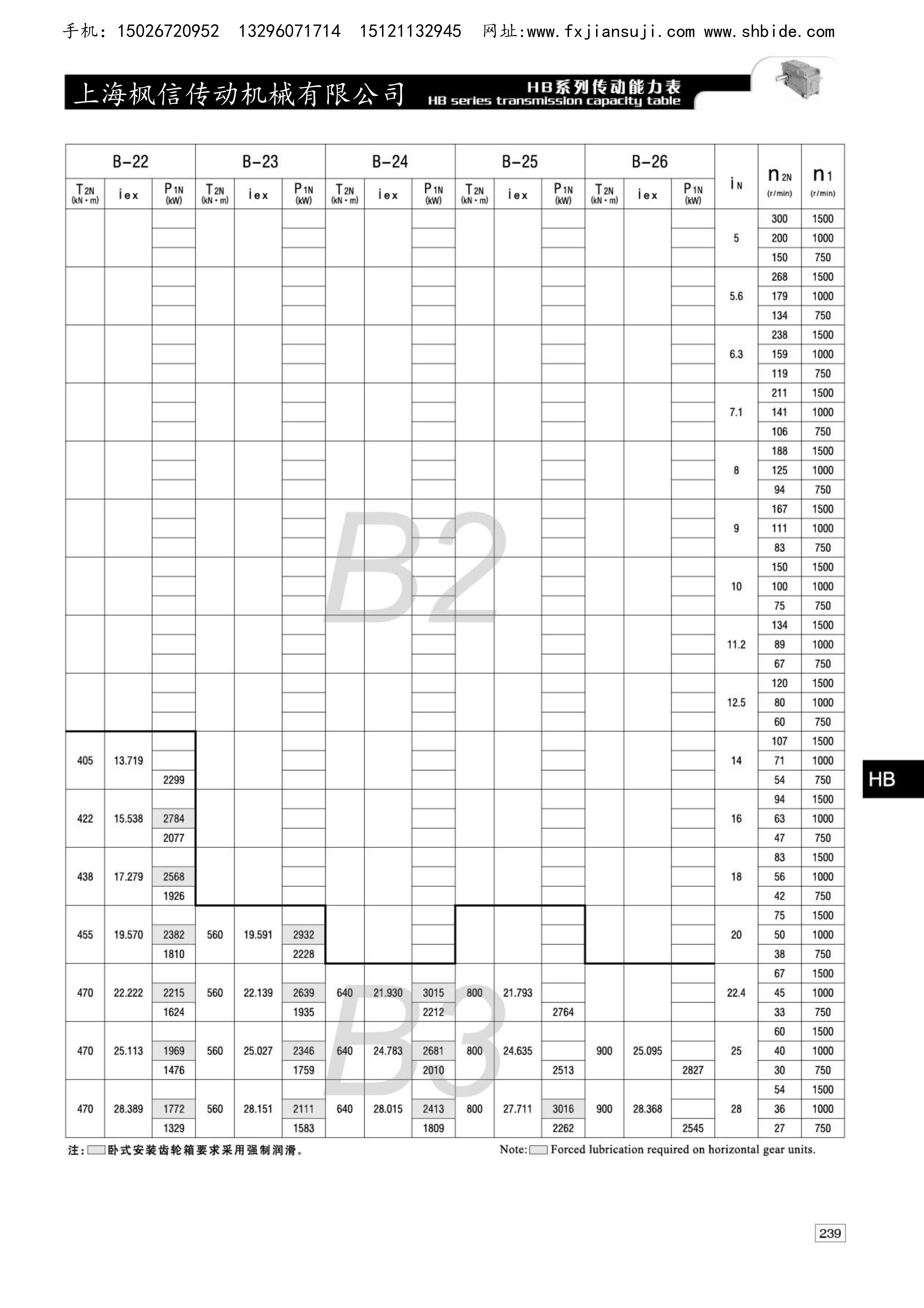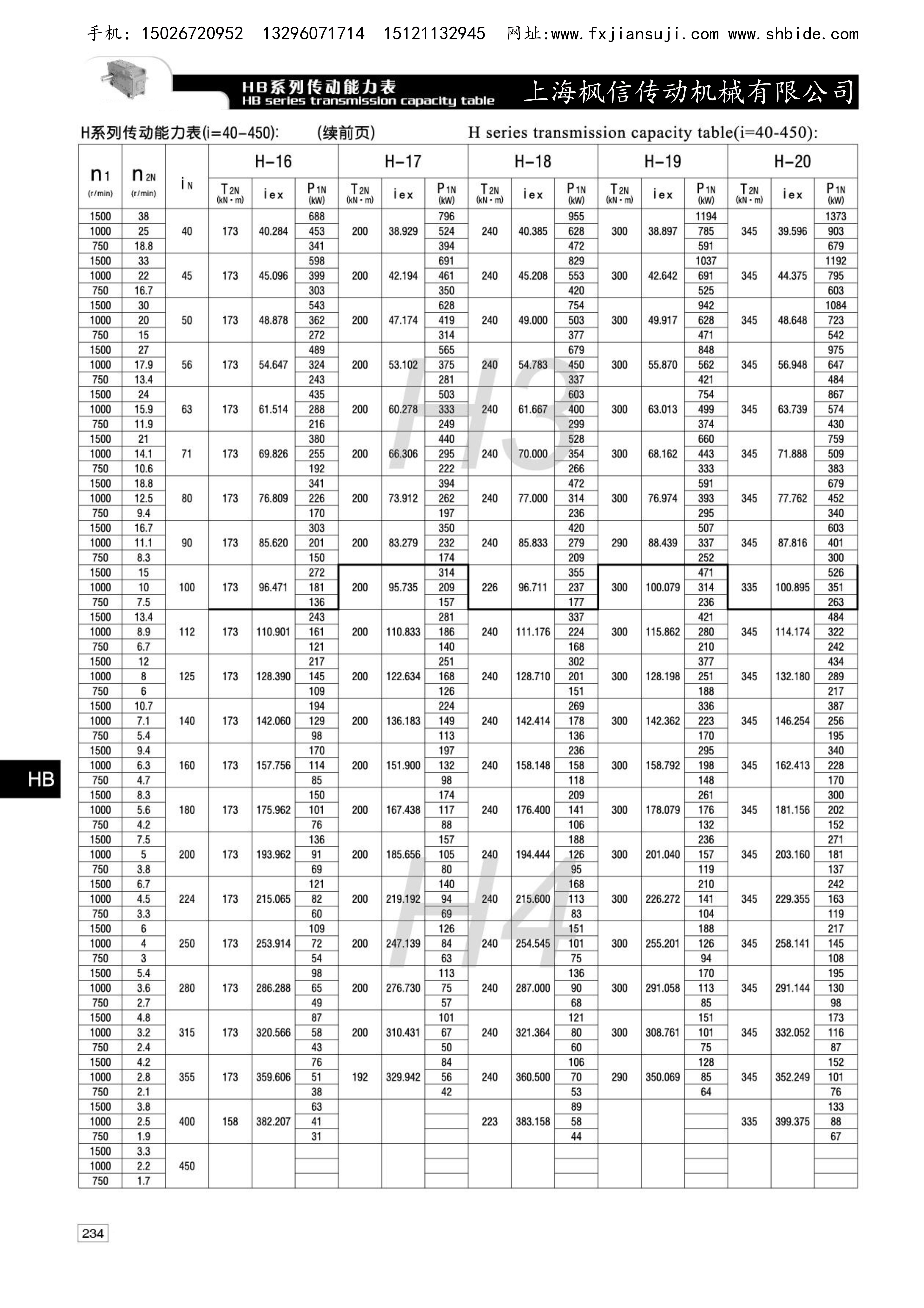- FXHB选型参数表 Selection Table 系列大功率工业齿轮箱