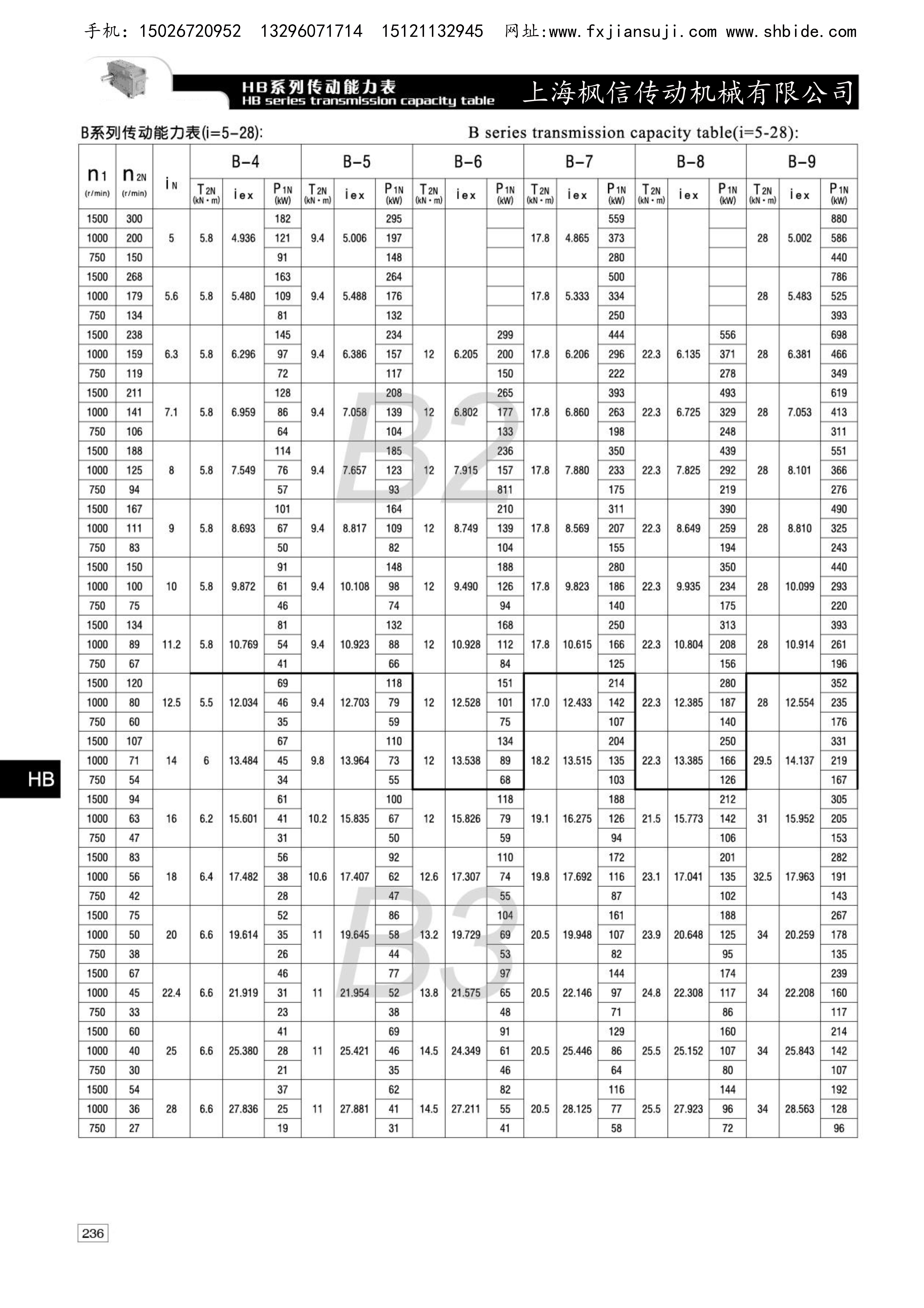 - FXHB选型指南 Guidelines for the Selection系列减速箱