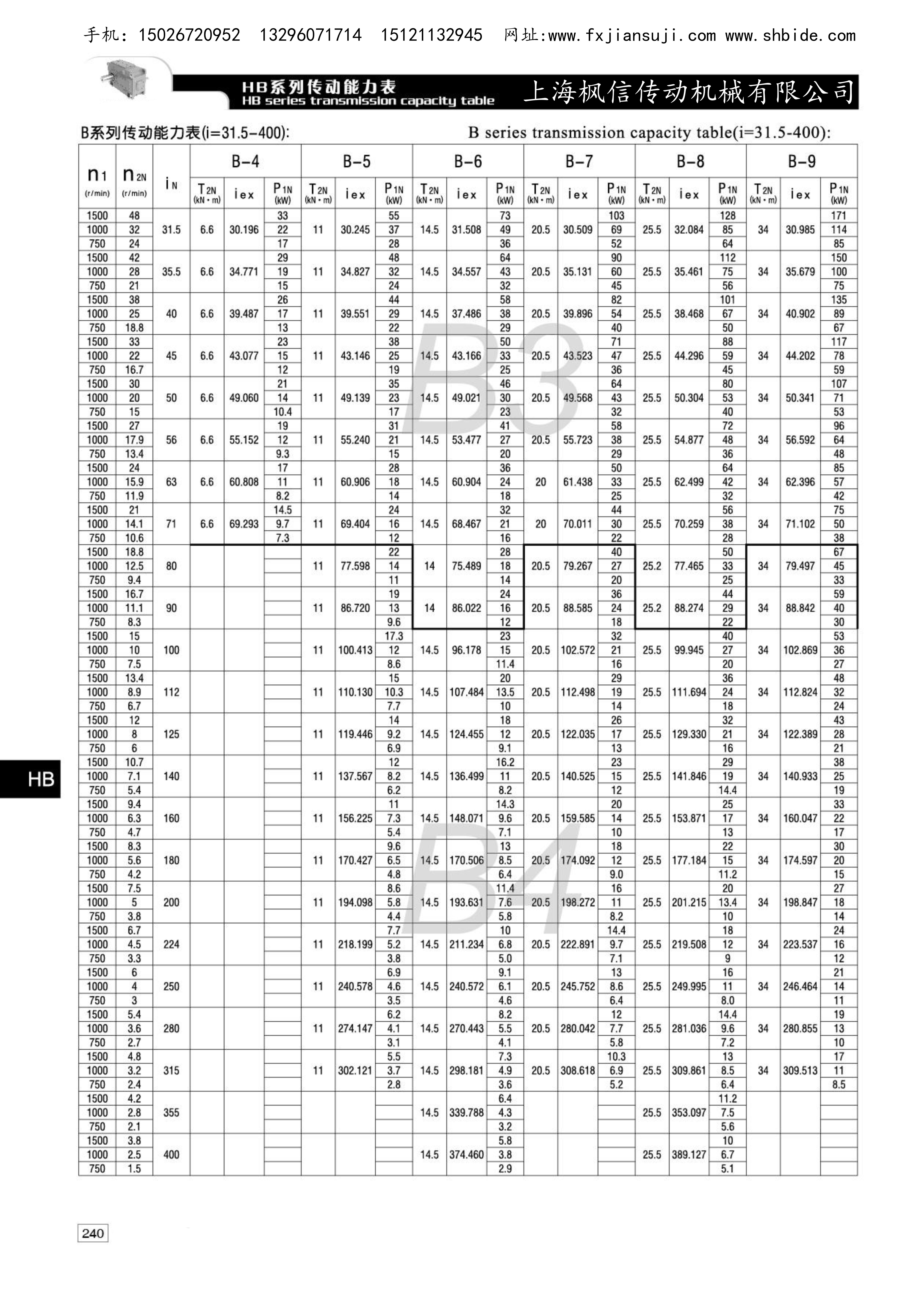 - H,B系列标准工业齿轮箱。 B系列额定热容量【KW】
