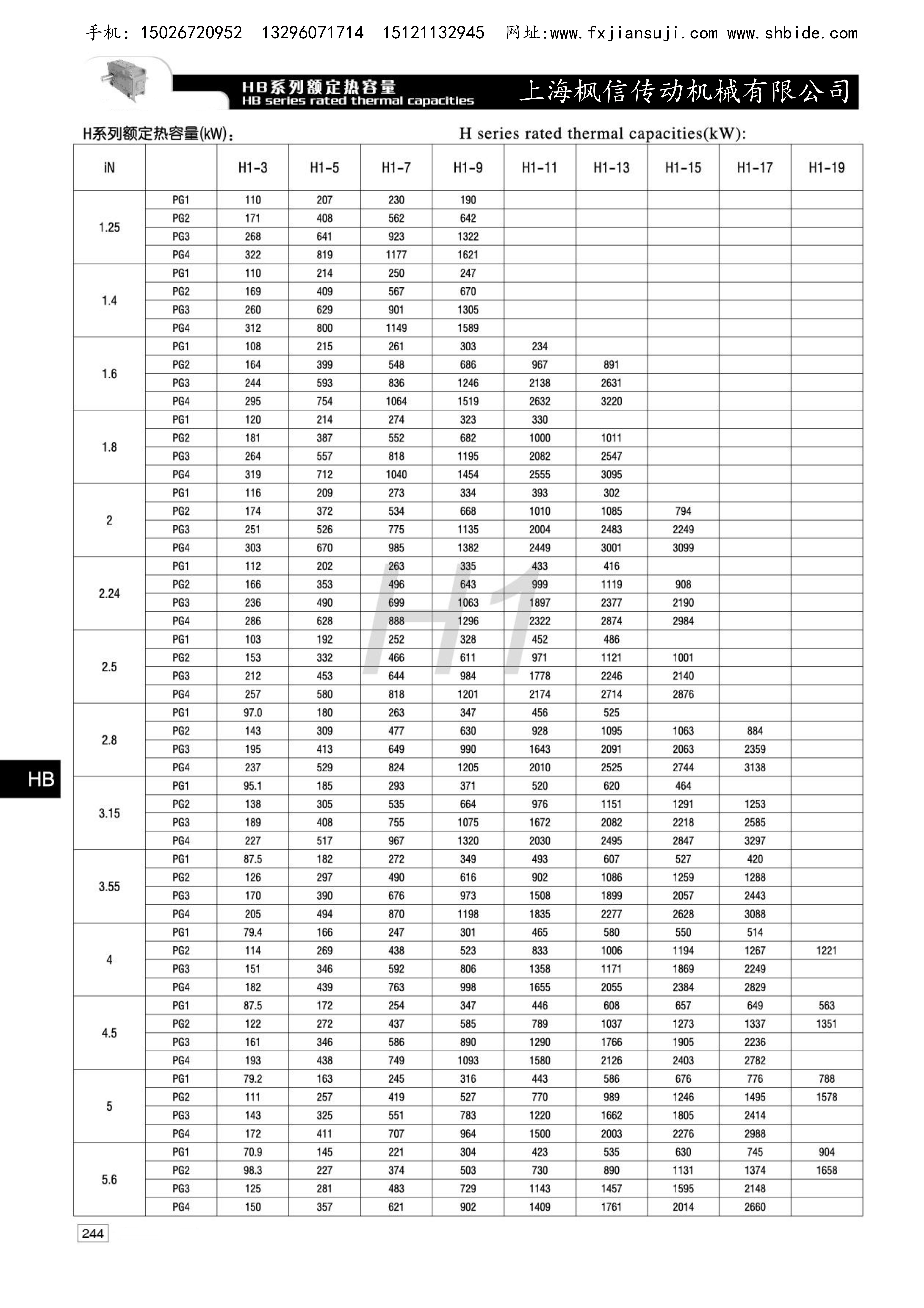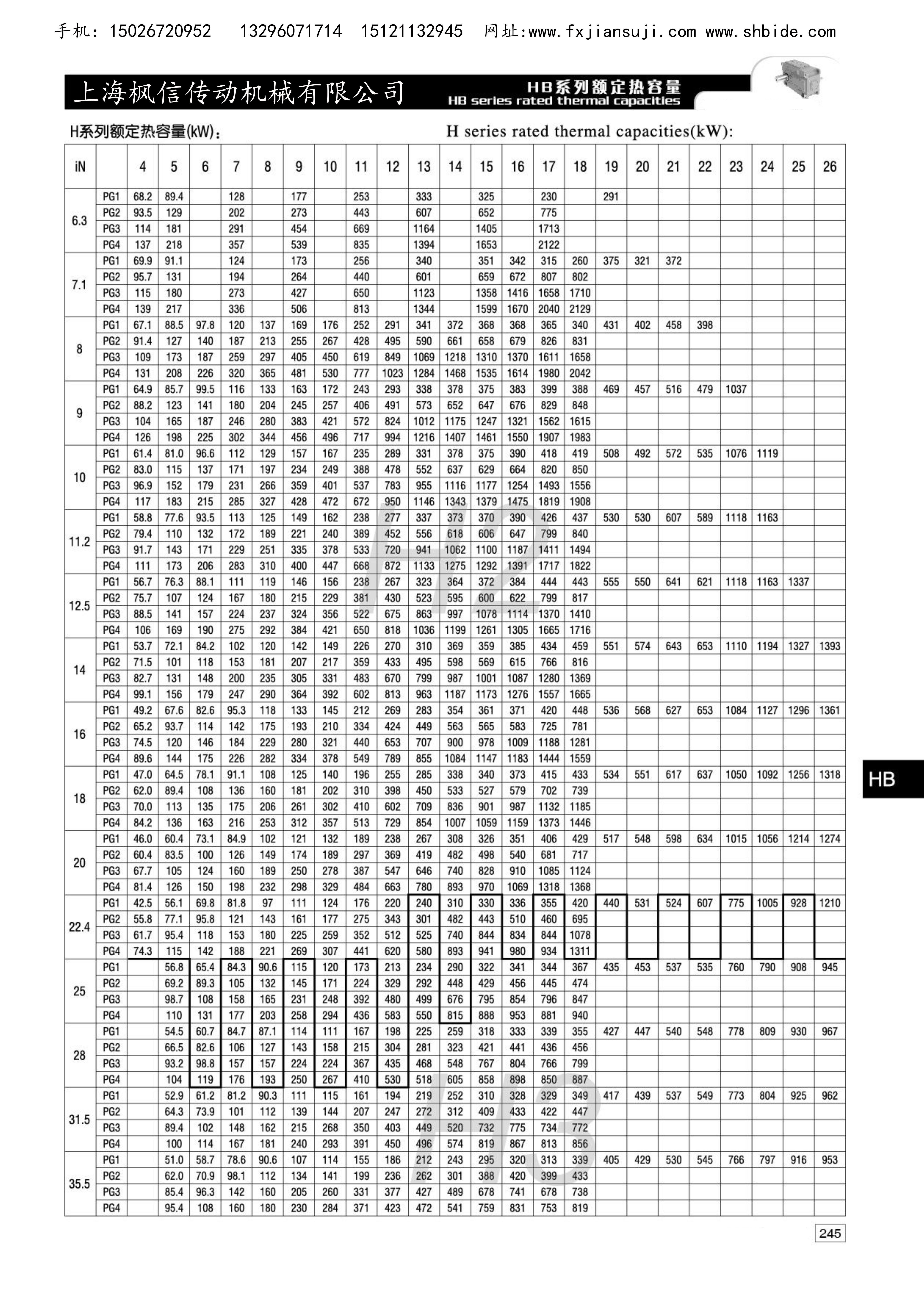 - H,B系列标准工业齿轮箱。 H系列额定热容量【KW】。H型