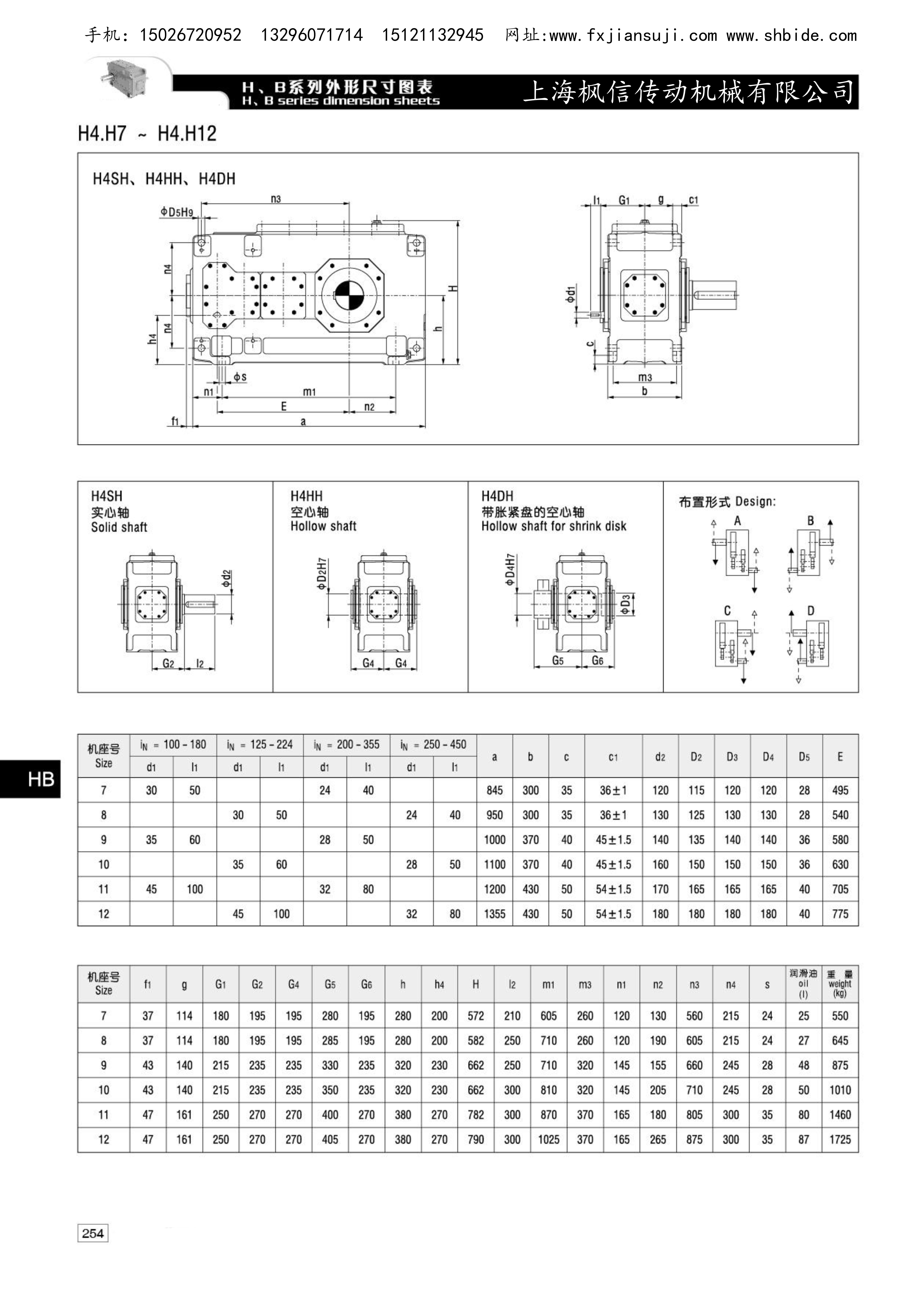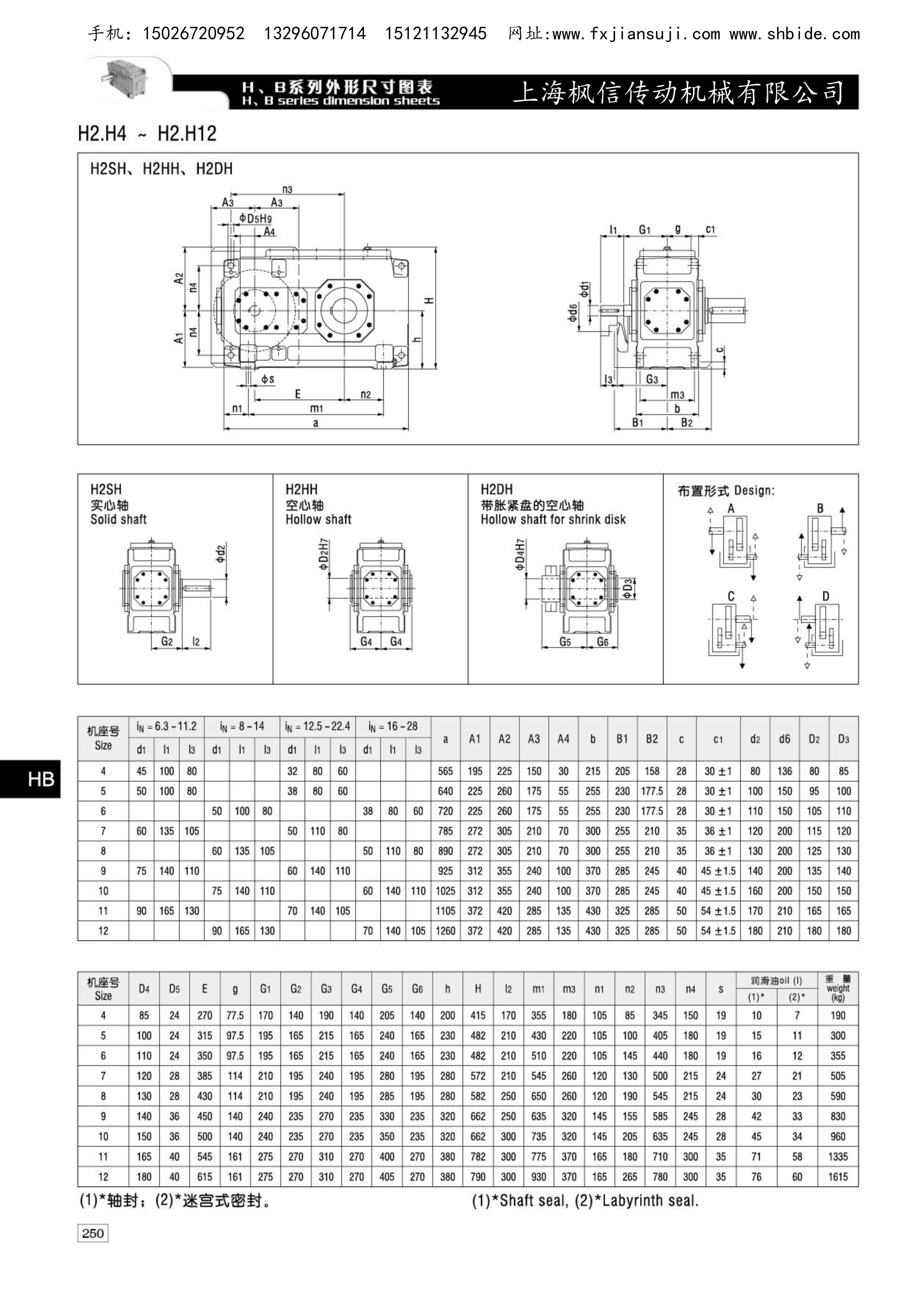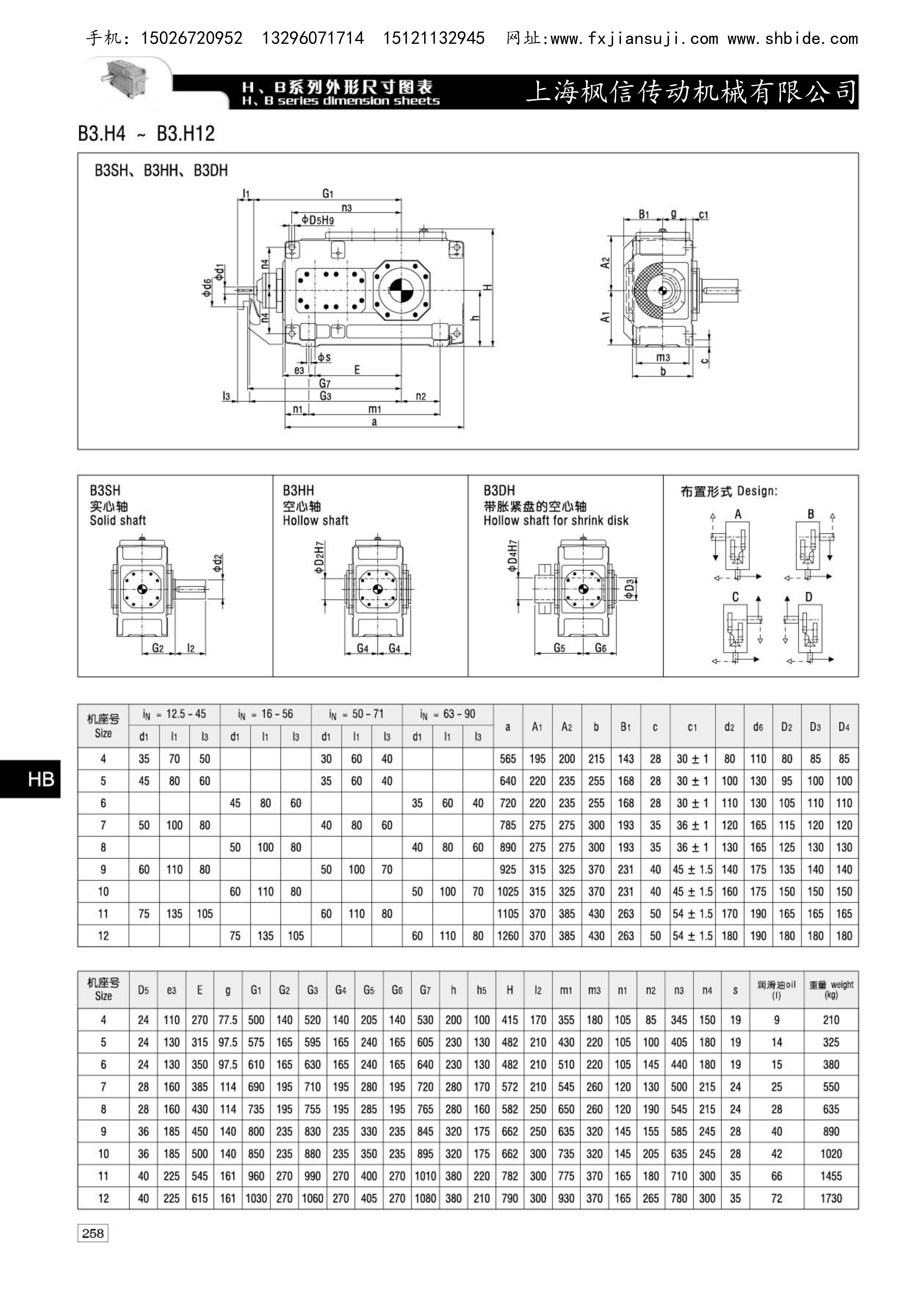 - H,B系列标准工业齿轮箱。 输出轴尺寸图表;实心轴,空心轴,带胀紧盘的空心轴,单级斜齿轮箱介绍,外形如图