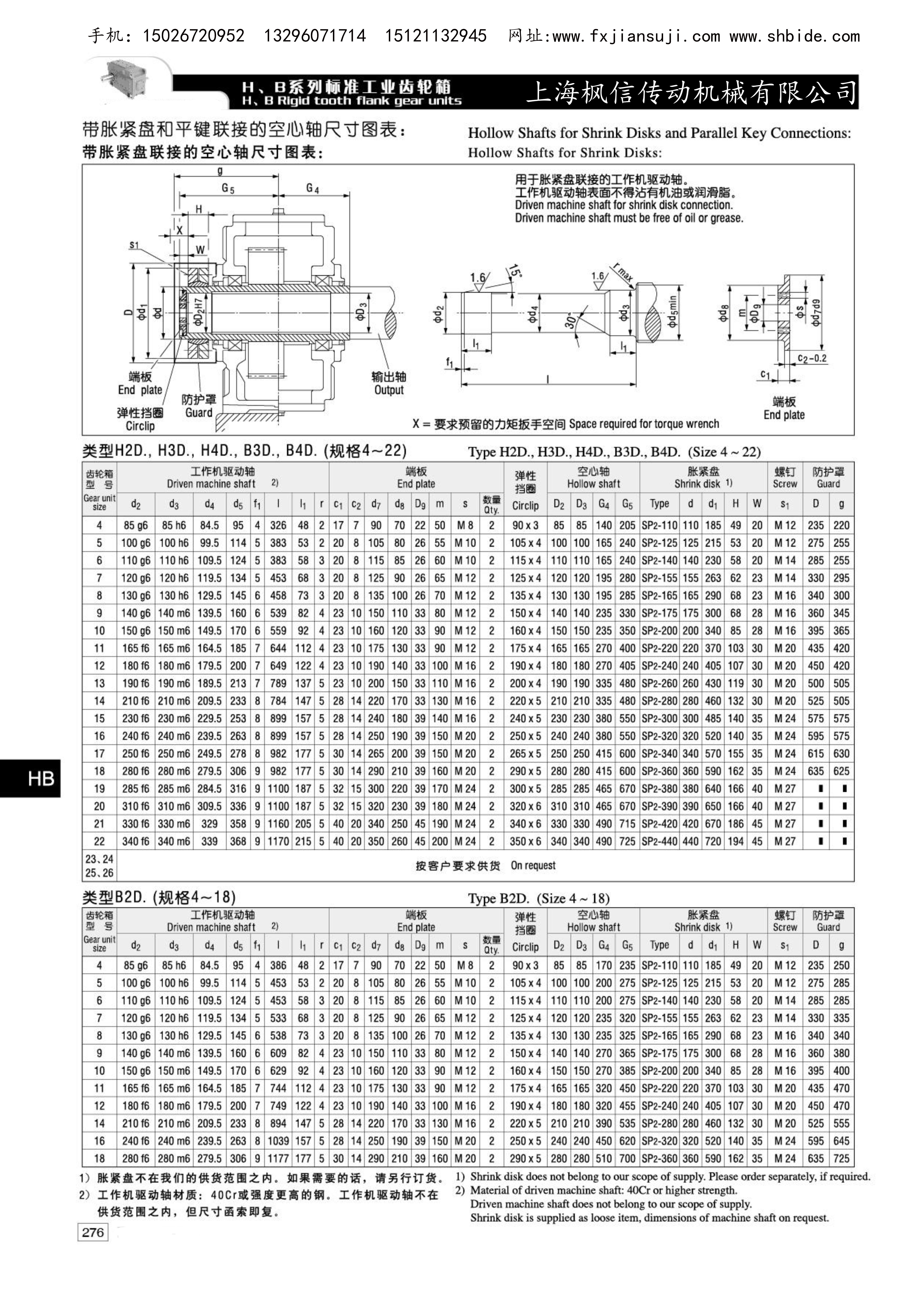 - FXHB减速器 Gear Units,带胀紧盘连接的空心轴 Hollow Shaft for Shrink Disks 规格 3...26 Sizes 3...26 类型 TH2,TH3,TH4,TB3,TB4 ,Types TH4,TB3,TB4,系列大功率工业齿轮箱