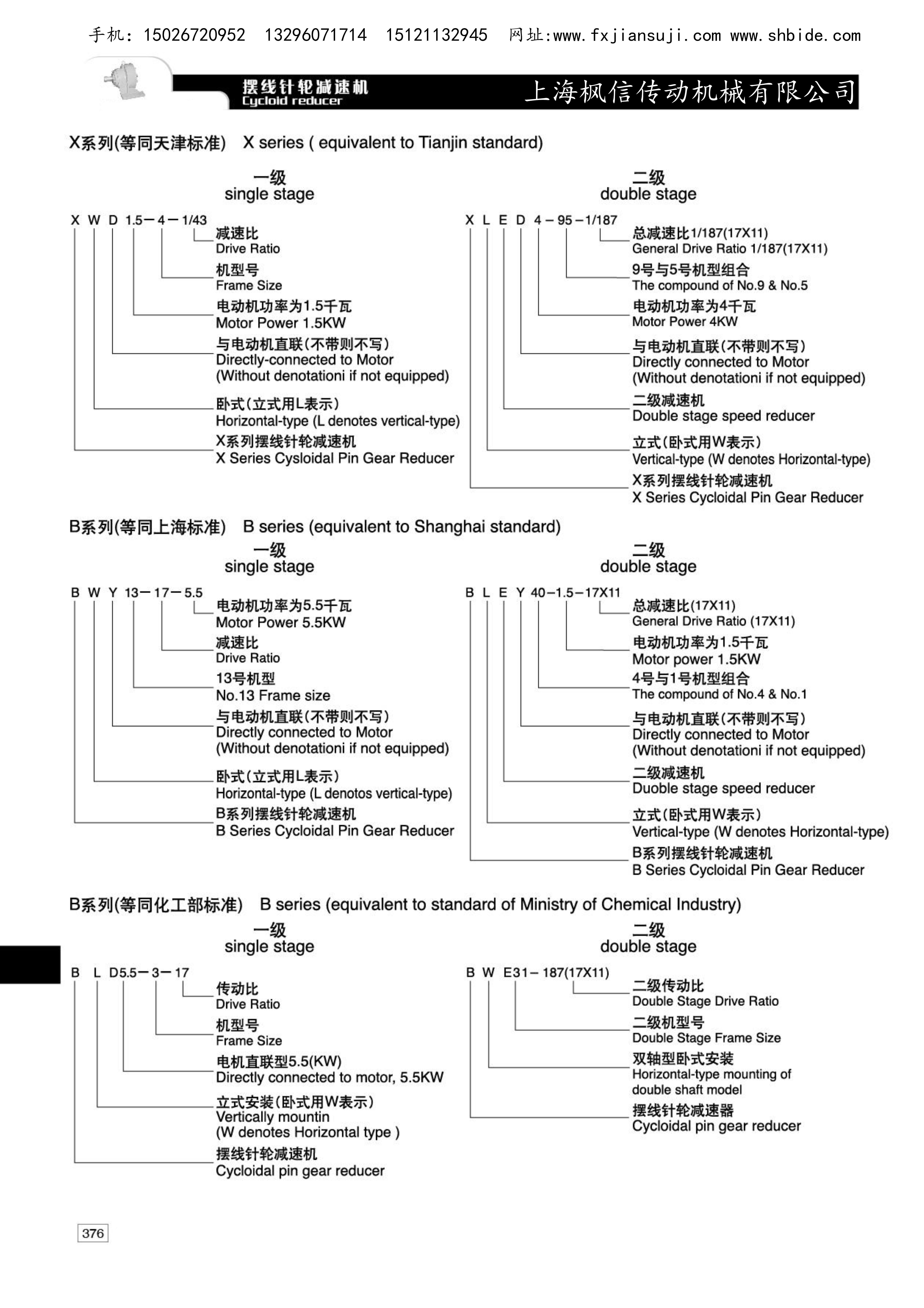 - WB系列摆线针轮减速机。单级摆线针轮减速机标准机型代号,双级摆线针轮减速机标准机型代号,摆线针轮减速机工作情况系数表