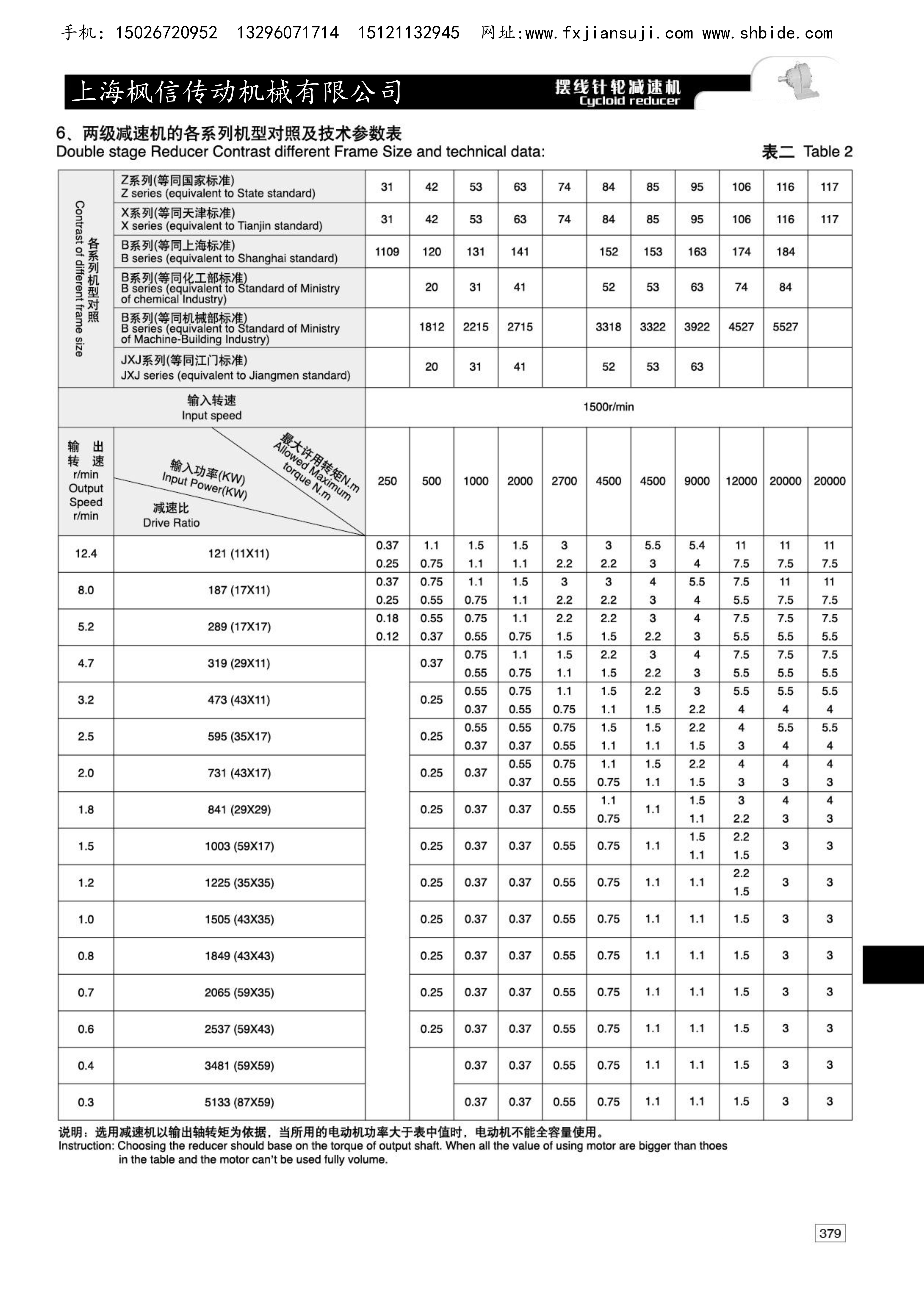 - WB系列摆线针轮减速机。电机直联单级摆线针轮减速机的传动比和输入功率表,双级摆线针轮减速机的传动比和输入功率表。 注;其他标准机型代号查对照表