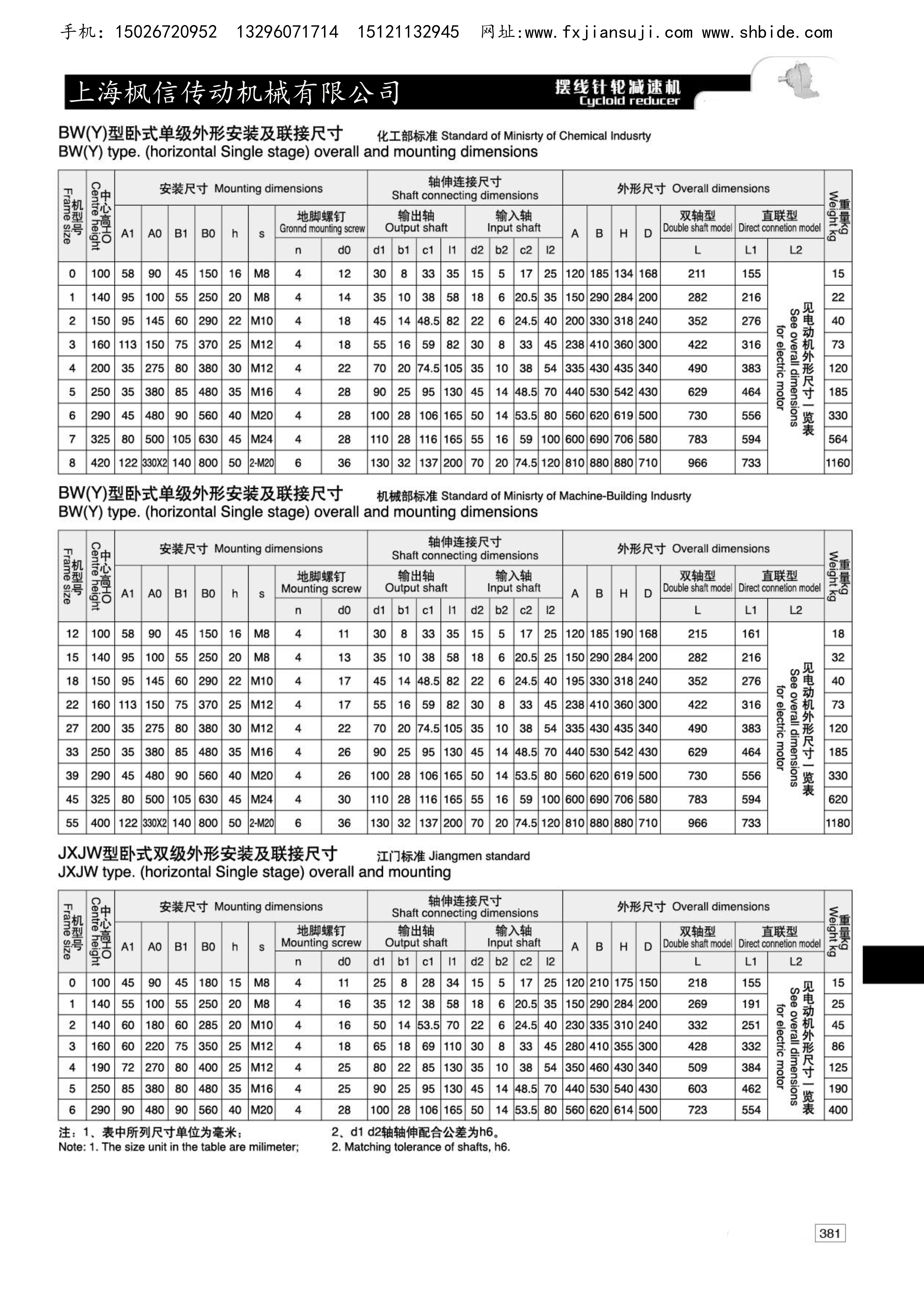 - B.X.WB系列摆线针轮减速机外形,安装和联接尺寸【脚板式卧装】,BW BWY 型单极摆线针轮减速机外形,安装和联接尺寸【B系列标准】XW XWY 型单极摆线针轮减速机外形,安装和联接尺寸【X系列标准】