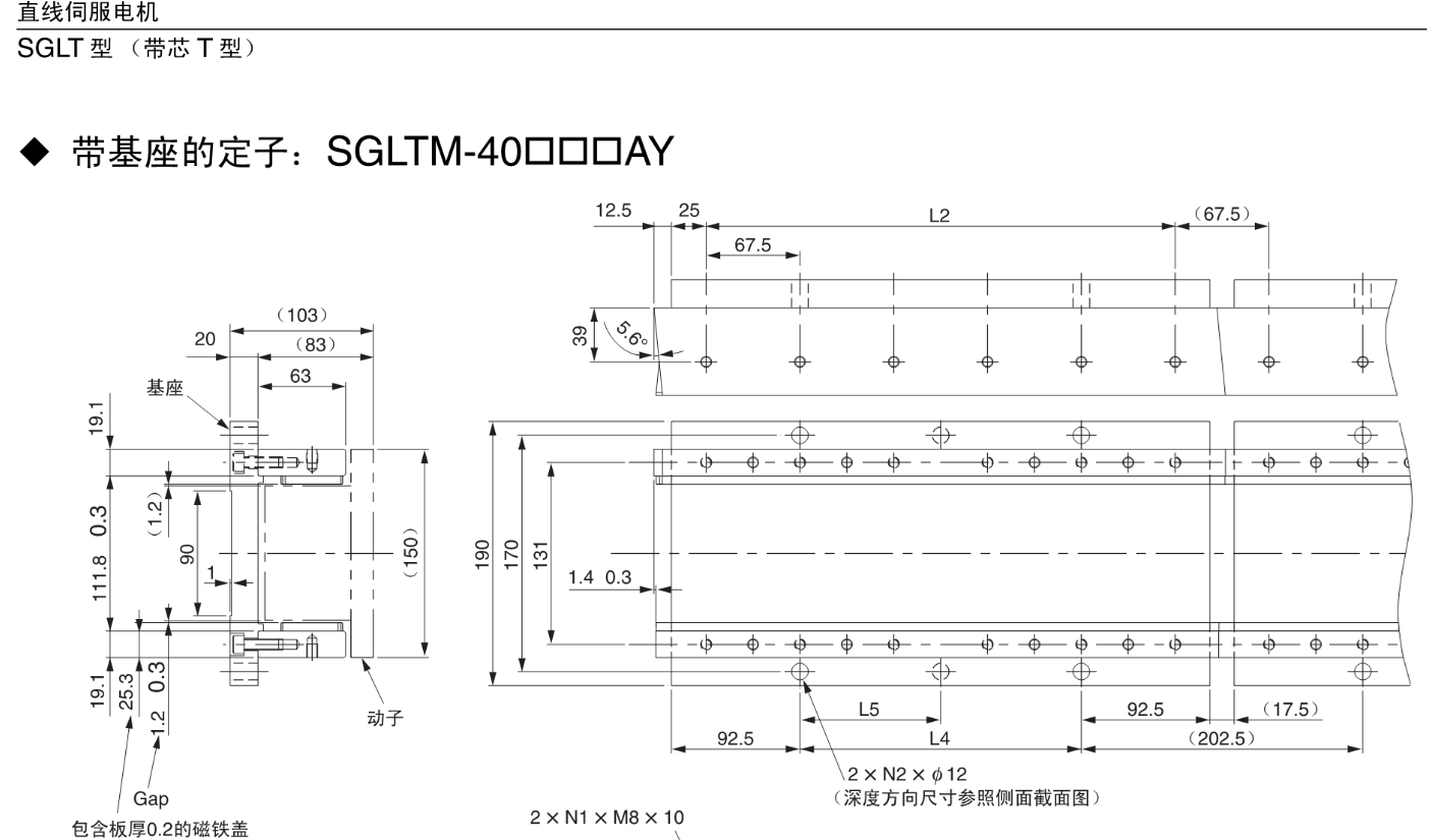 FX安川伺服电机 带基座的定子;SGLTM-40口口口AY,直线伺服电机SGLT型【带芯T型】