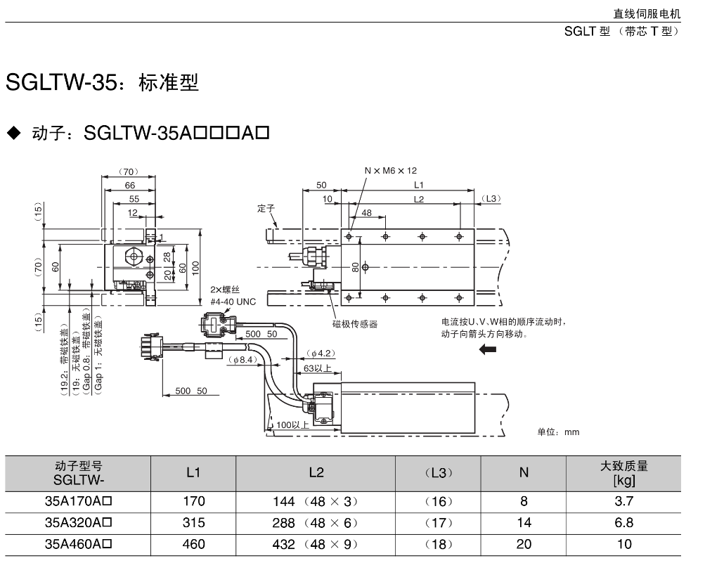 FX安川伺服电机 SGLTW-35;标准型,动子;SGLTW-35A口口口A口,直线伺服电机SGLT型【带芯T型】