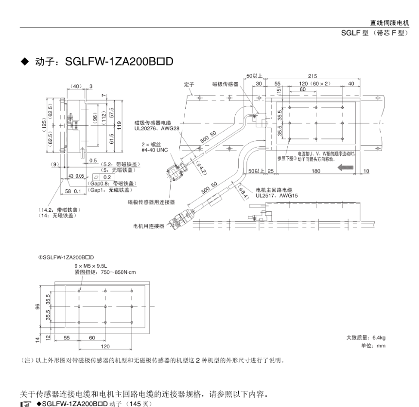 FX安川伺服电机 动子;SGLFW-1ZA200B口D,直线伺服电机SGLF型【带芯F型】