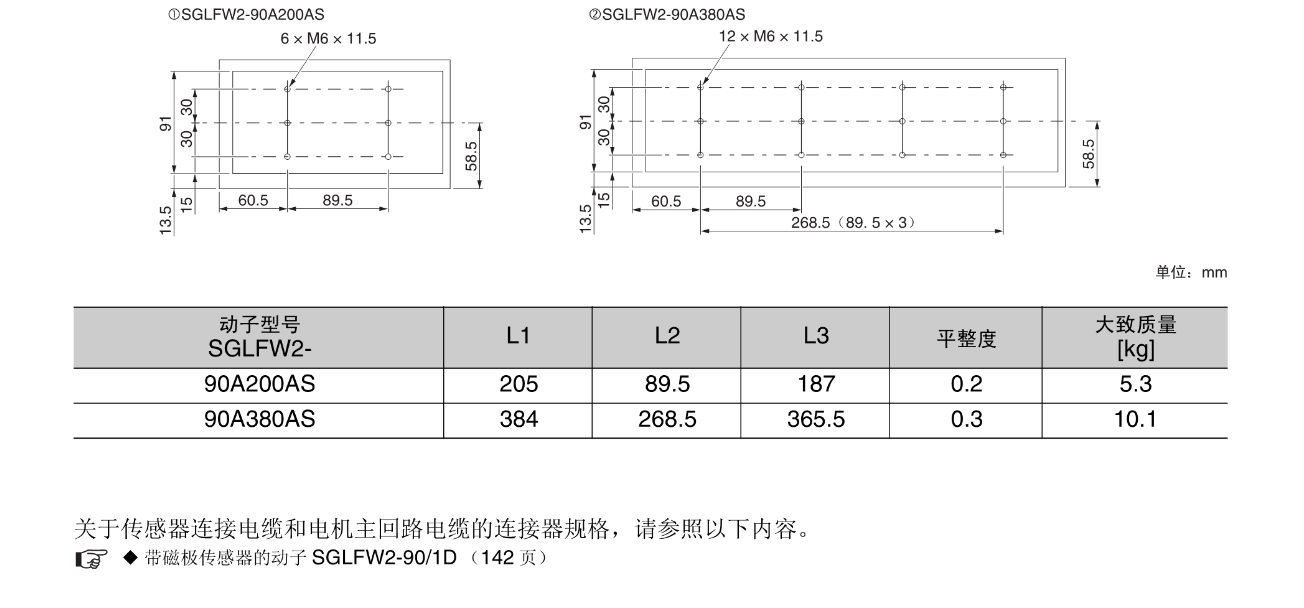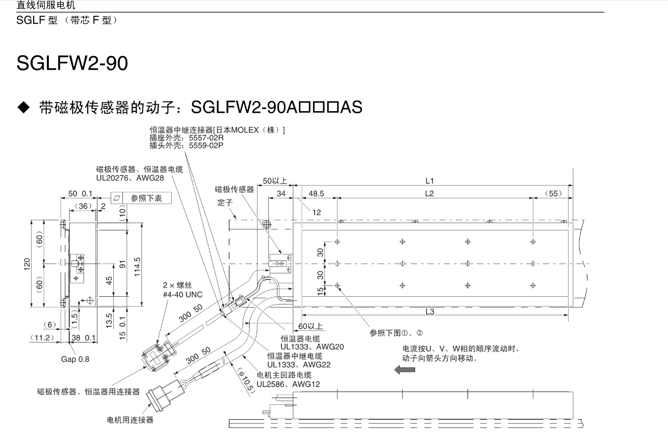 FX安川伺服电机 SGLFW2-90,带磁极传感器的动子;SGLFW2-90A口口口AS,直线伺服电机SGLF型【带芯F型】
