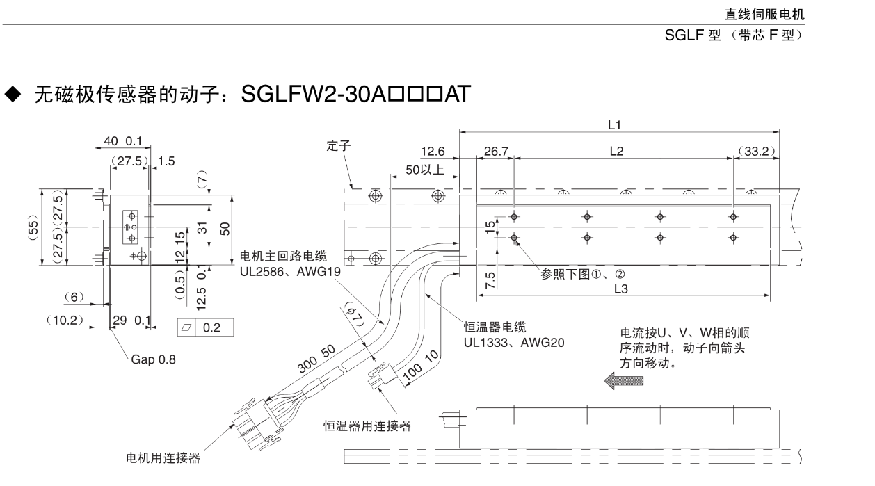 FX安川伺服电机 无磁极传感器的动子SGLFW2-30A口口口AT,直线伺服电机SGLF型【带芯F型】