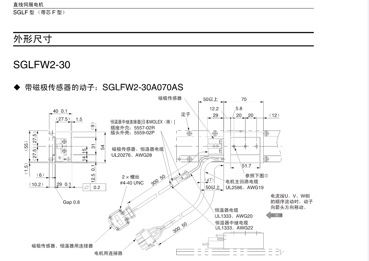 FX安川伺服电机 外形尺寸SGLFW2-30,直线伺服电机SGLF【带芯F型】