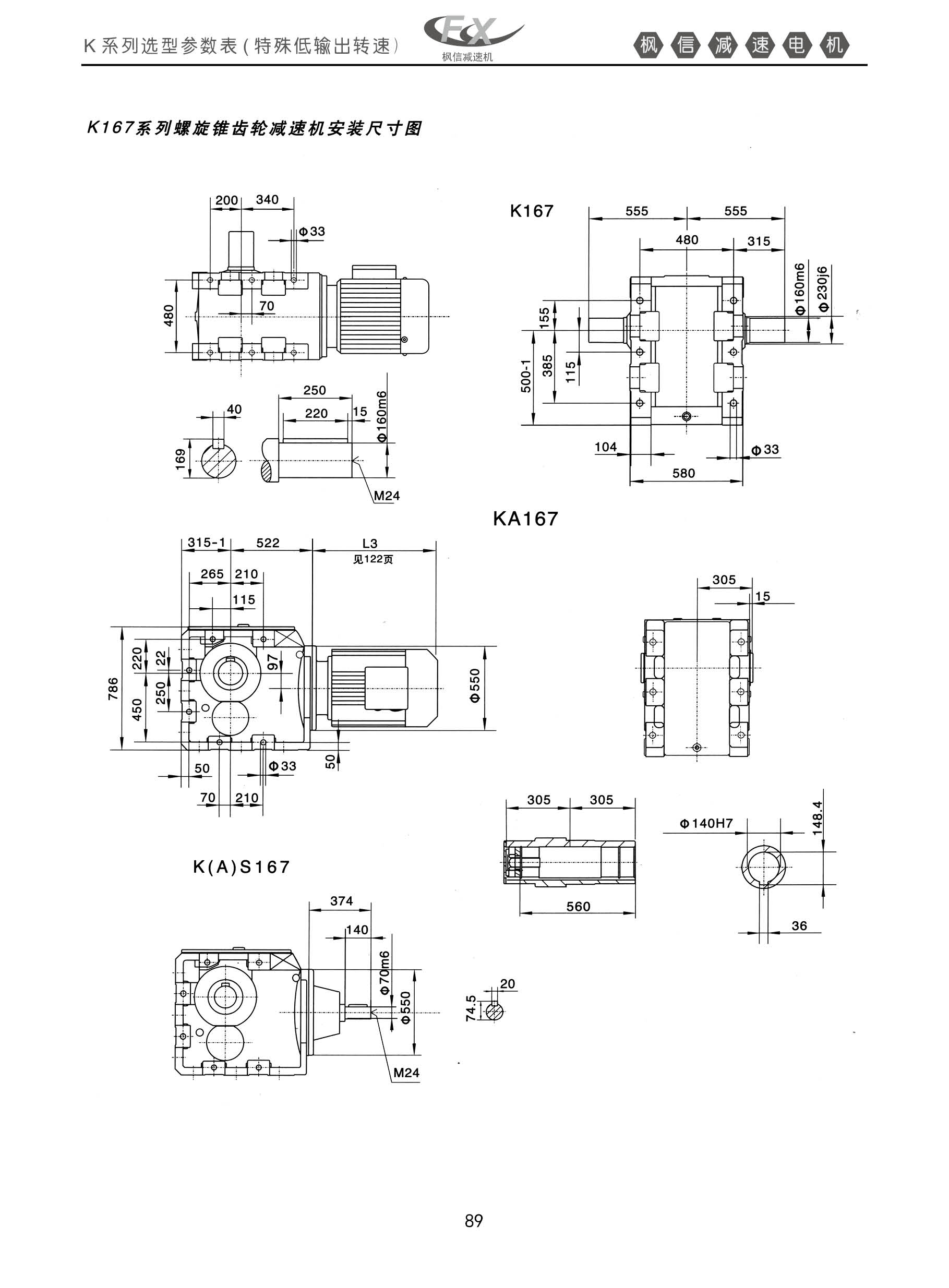 FXK系列螺旋锥齿轮减速机。K167系列选型参数表【特殊低输出转速】