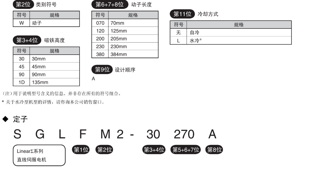 FX安川伺服电机 型号的含义,SGLFW2型,动子,定子,直线伺服电机SGLF型【带芯F型】