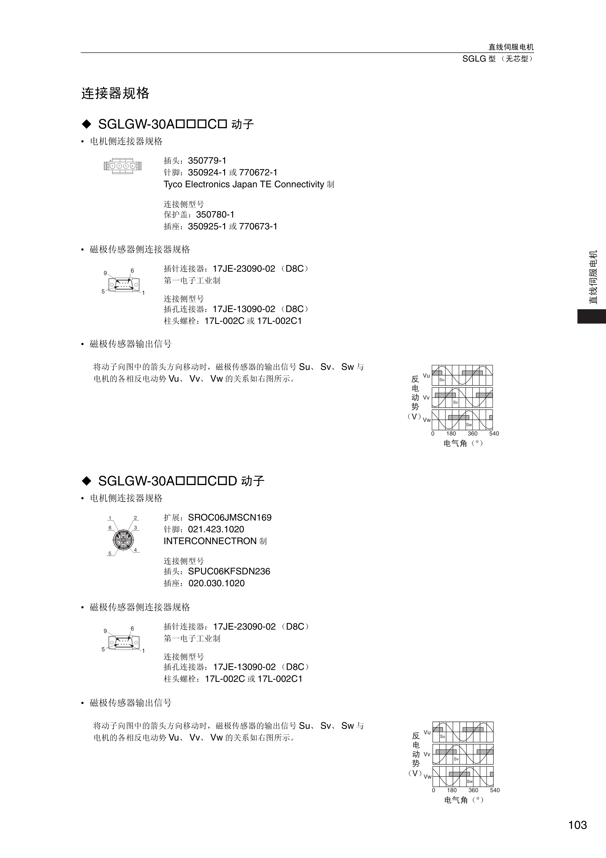 FX安川伺服电机 连接器规格,SGLGW-30A口口口C口动子,直线伺服电机SGLG型【无芯型】
