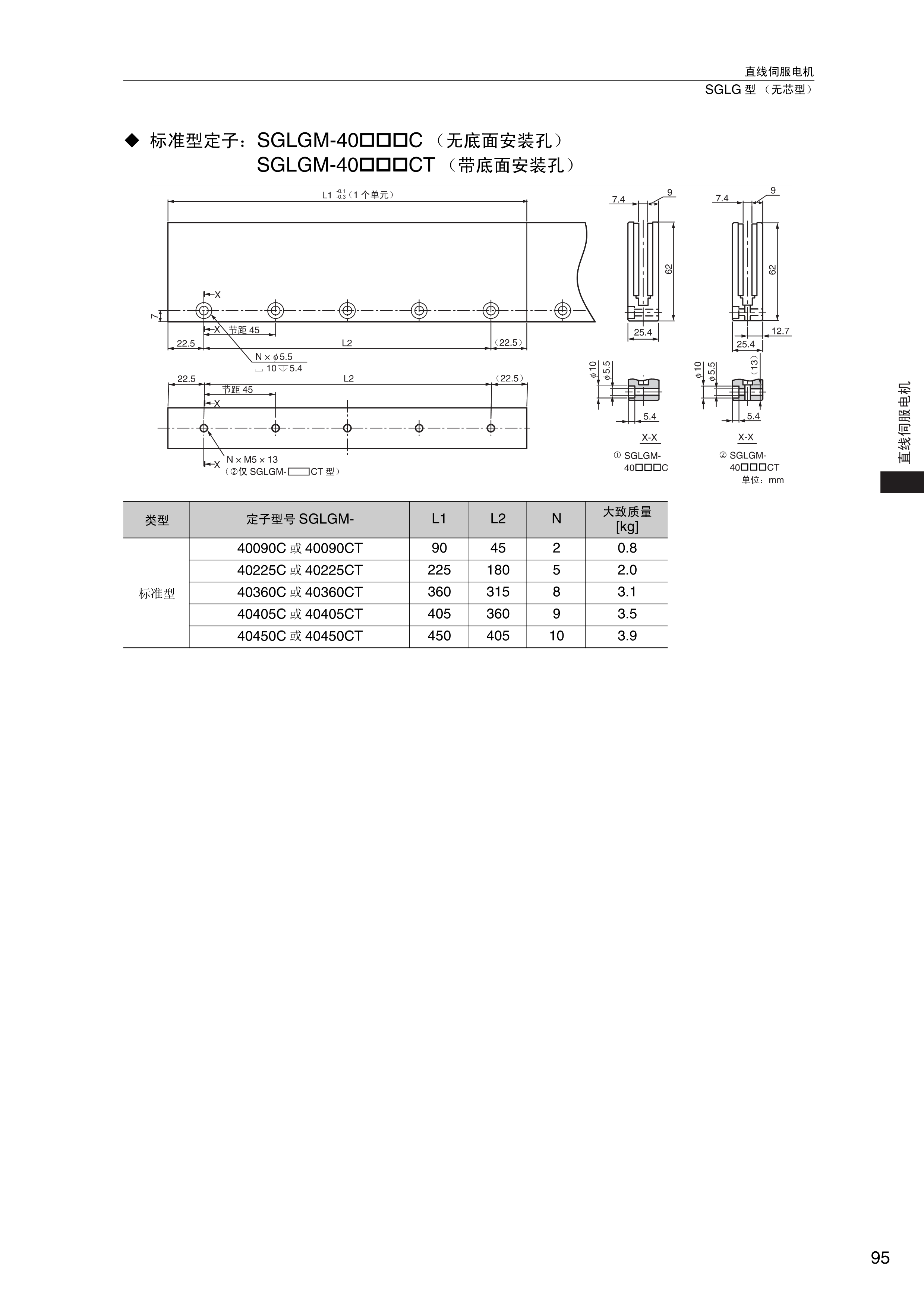 FX安川伺服电机 标准型定子;无底面安装孔,带底面安装孔,直线伺服电机SGLG型【无芯型】