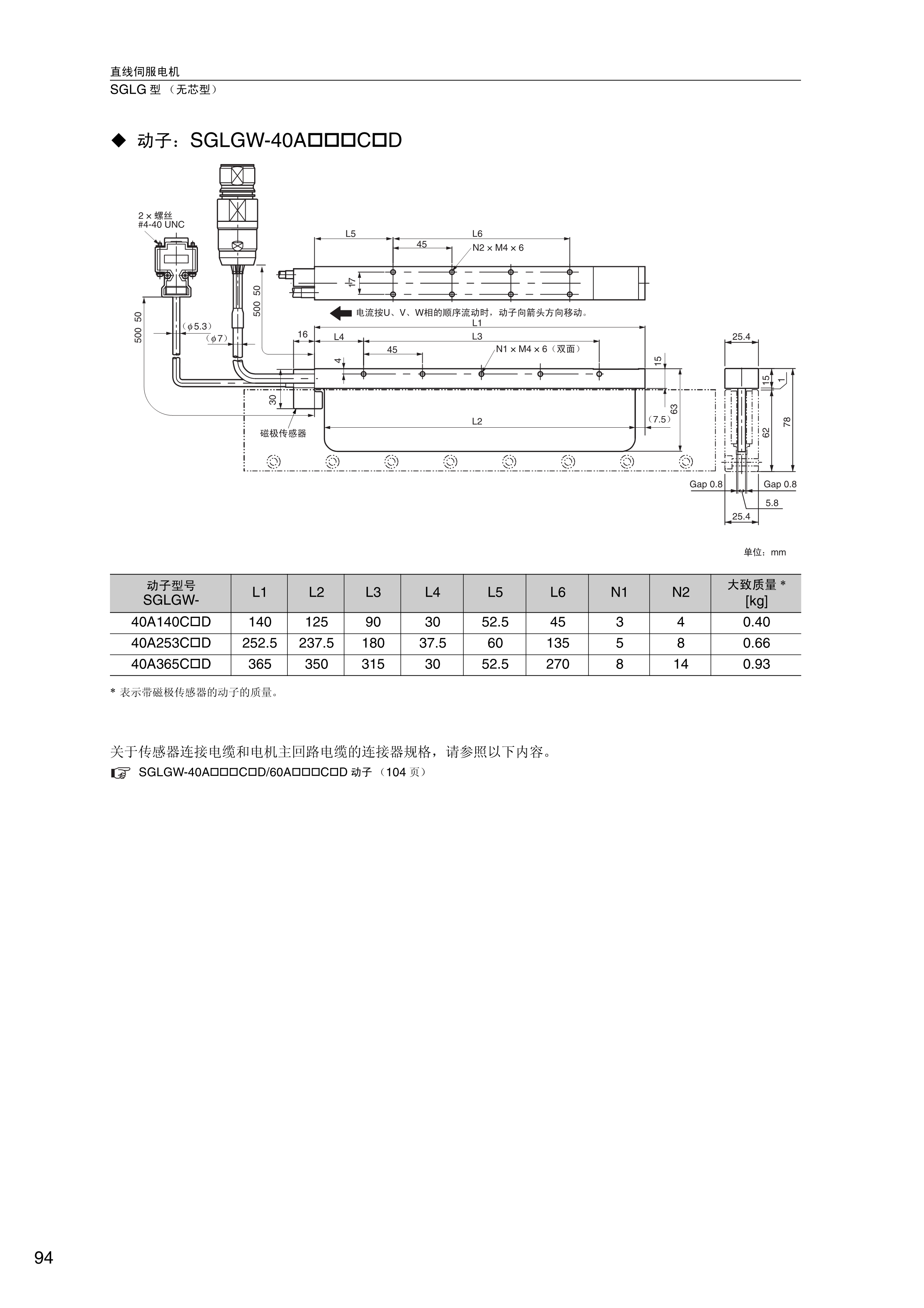 FX安川伺服电机 动子;SGLGW-40A口口口口D,直线伺服电机SGLG型【无芯型】