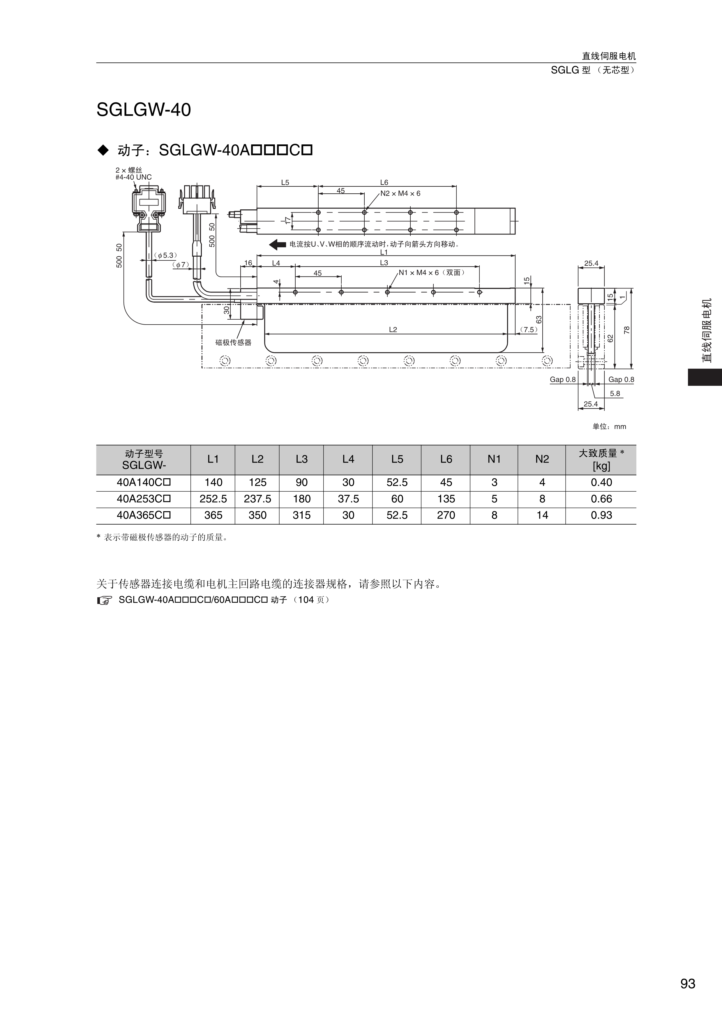 FX安川伺服电机 动子;SGLGW-40A口口口C口,直线伺服电机SGLG型【无芯型】