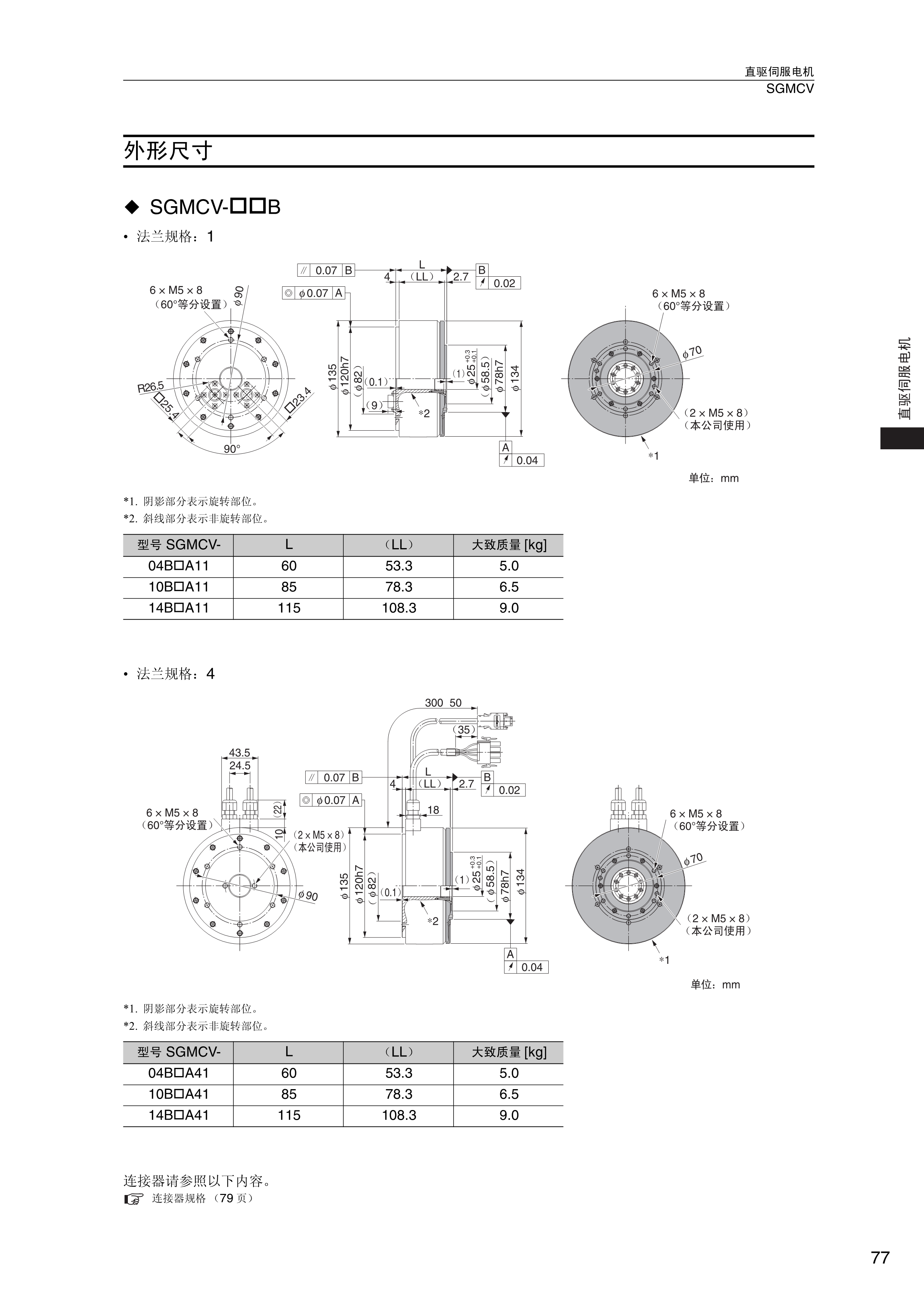 FX安川伺服电机 外形尺寸,SGMCV-口口B,直驱伺服电机SGMCV