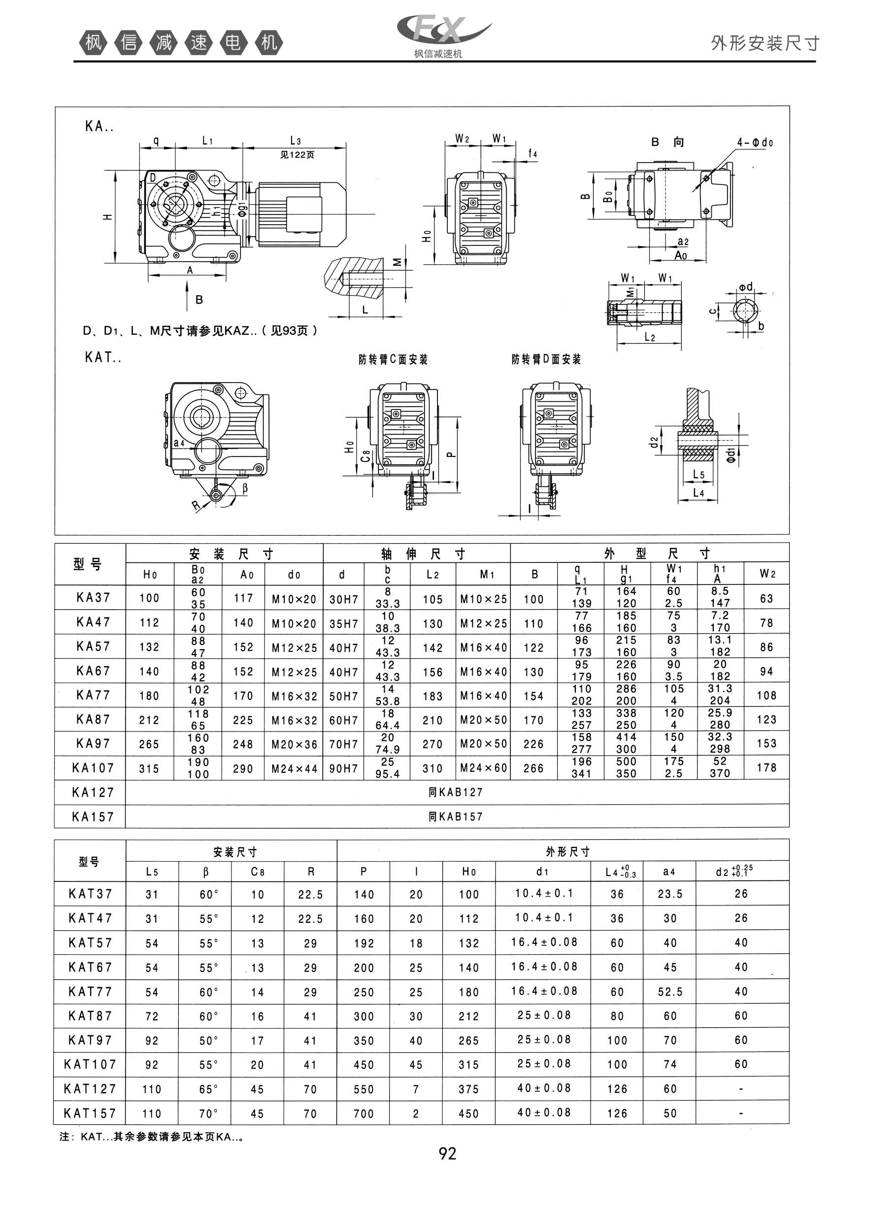 FXK系列螺旋锥齿轮减速机。外形安装尺寸。KA型,KAT型