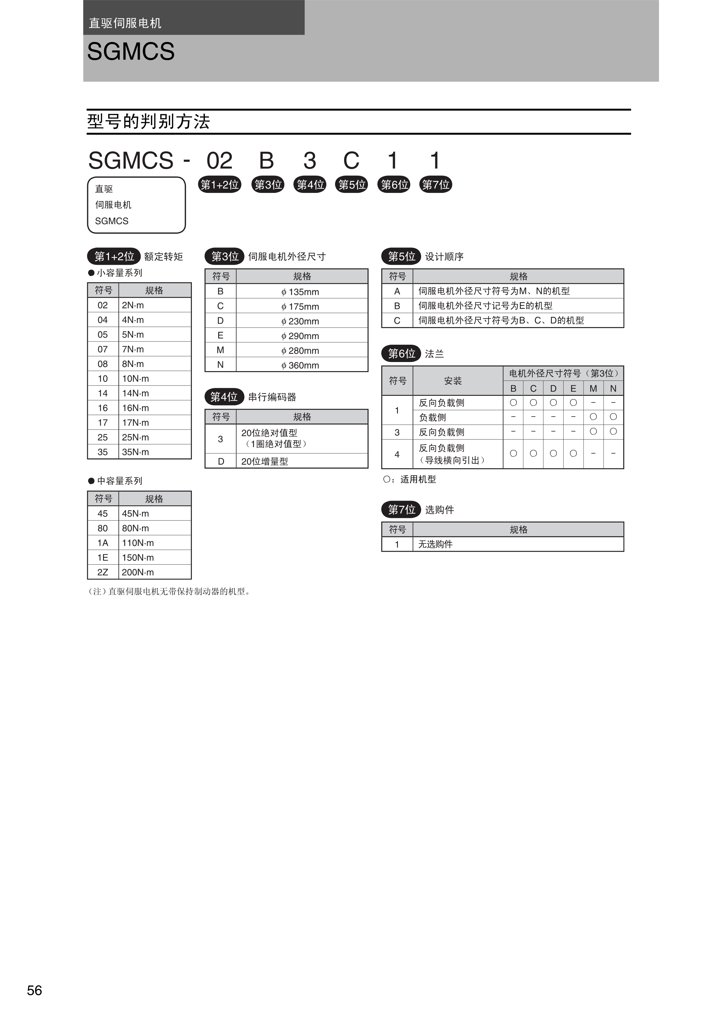 FX安川伺服电机 型号的判别方法,小容量系列,中容量系列,直线伺服电机SGMCS
