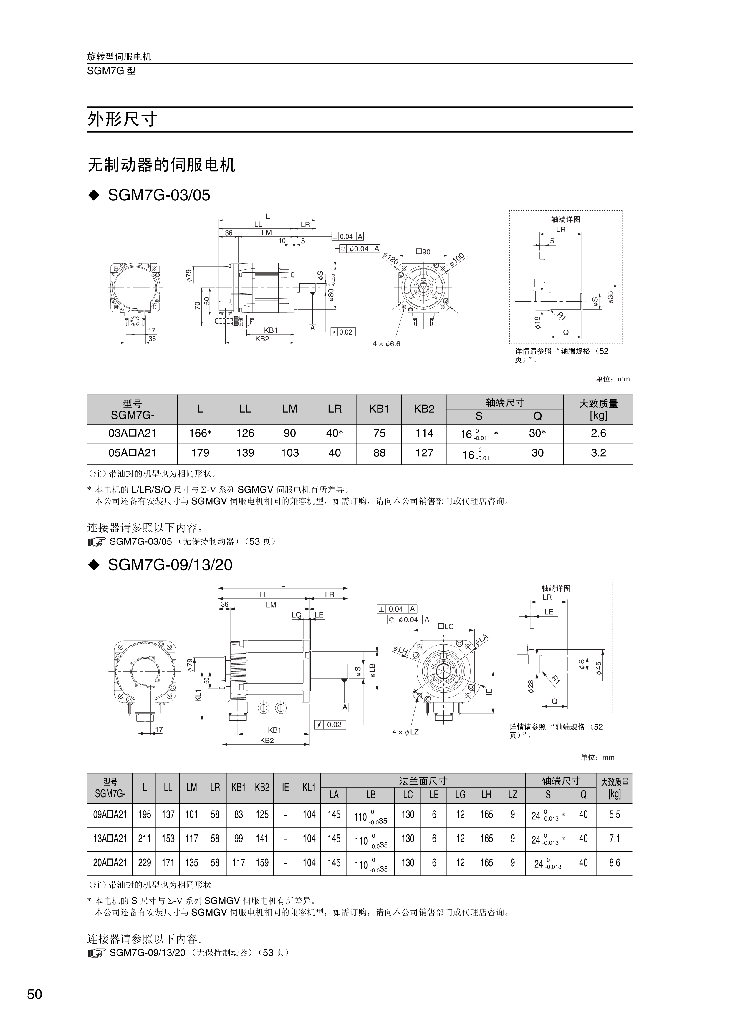 FX安川伺服电机 外形尺寸,无制动器的伺服电机,SGM7G-03/05,旋转型伺服电机SGM7G型