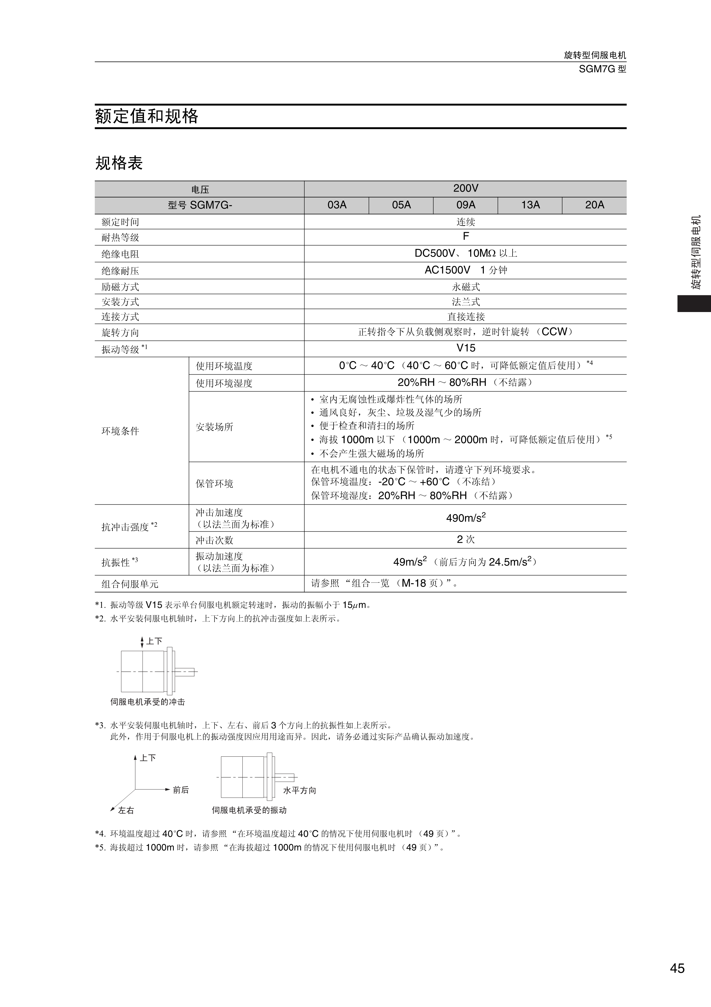FX安川伺服电机 额定值和规格,规格表,旋转型伺服电机SGM7G型