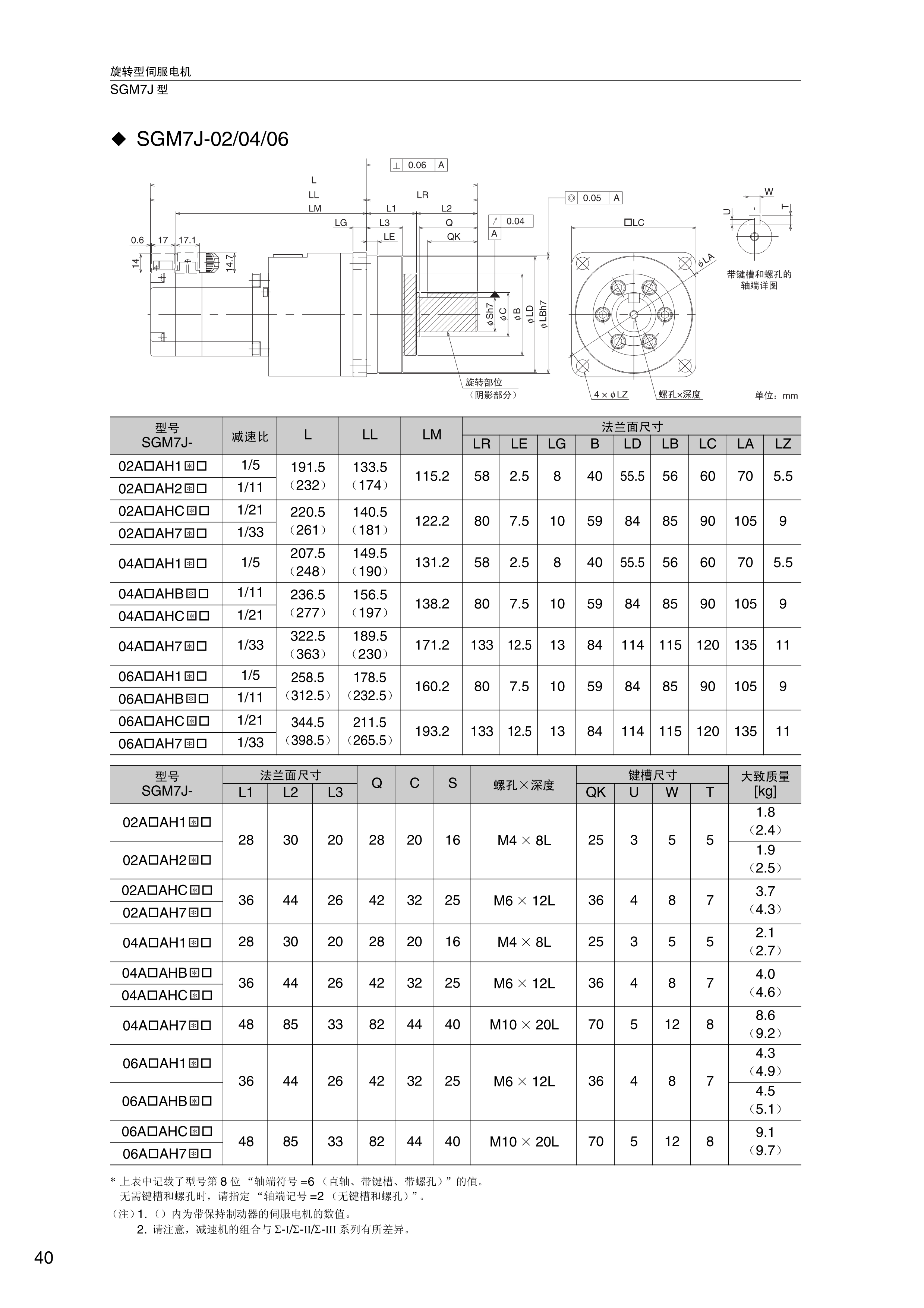 FX安川伺服电机 旋转型伺服电机SGM7J型SGM7J-02/04/06,旋转型伺服电机SGM7J型