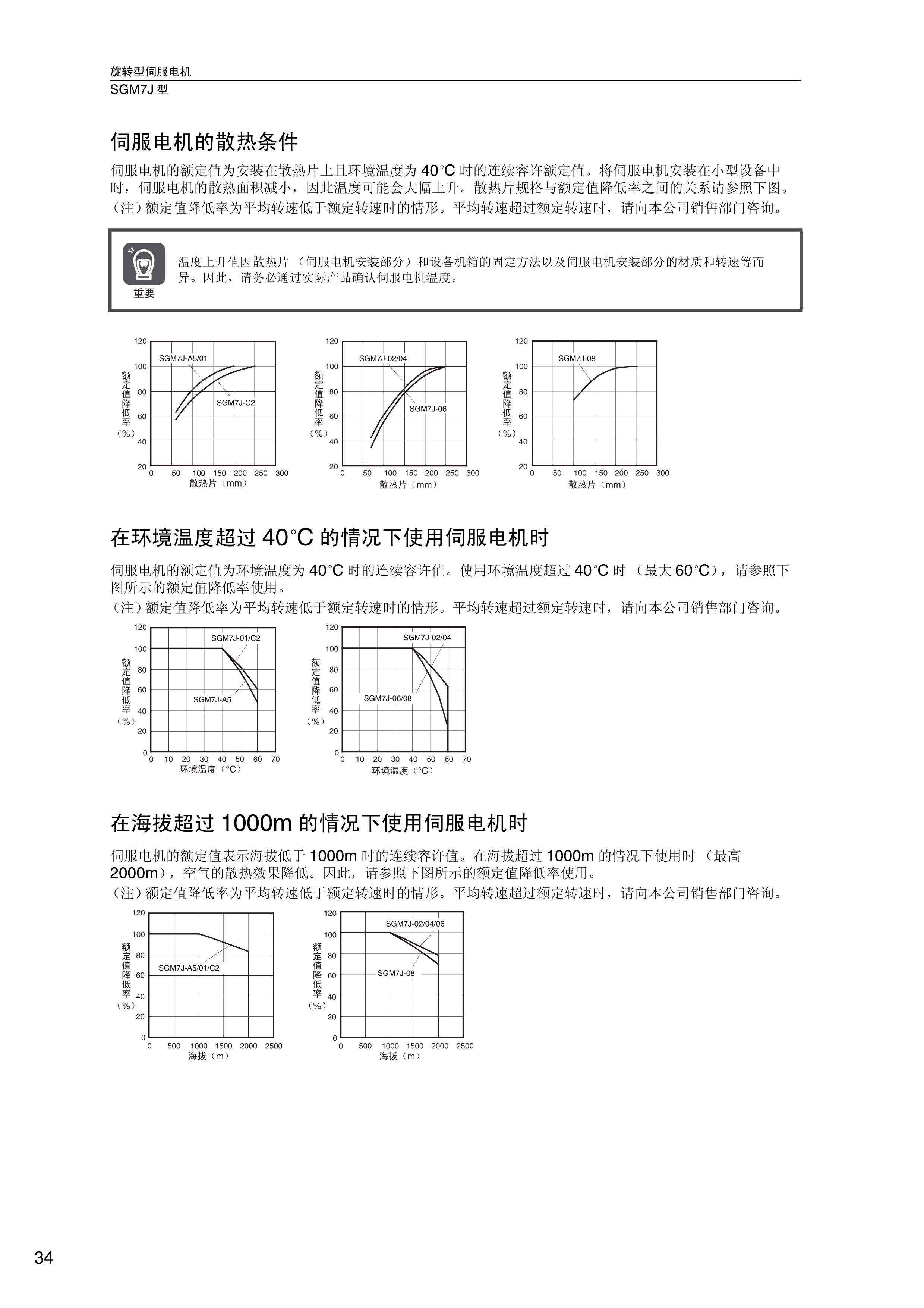 FX安川伺服电机 伺服电机的散热条件,在环境温度超过40°的情况下使用伺服电机式,在海拔超过1000m的情况下使用伺服电机时,旋转型伺服电机SGM7J型
