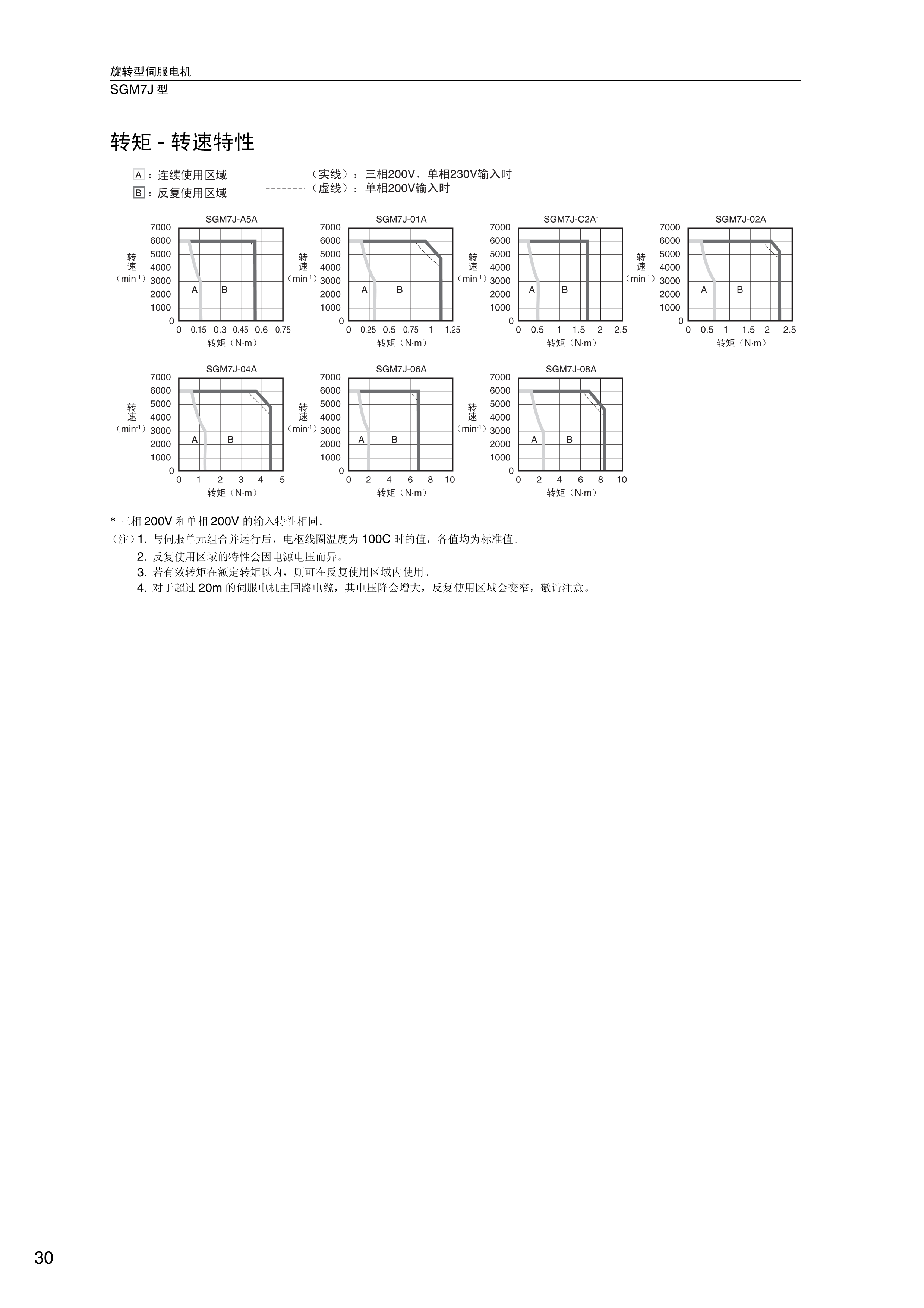 FX安川伺服电机 转矩-转速特性,旋转型伺服电机SGM7J型