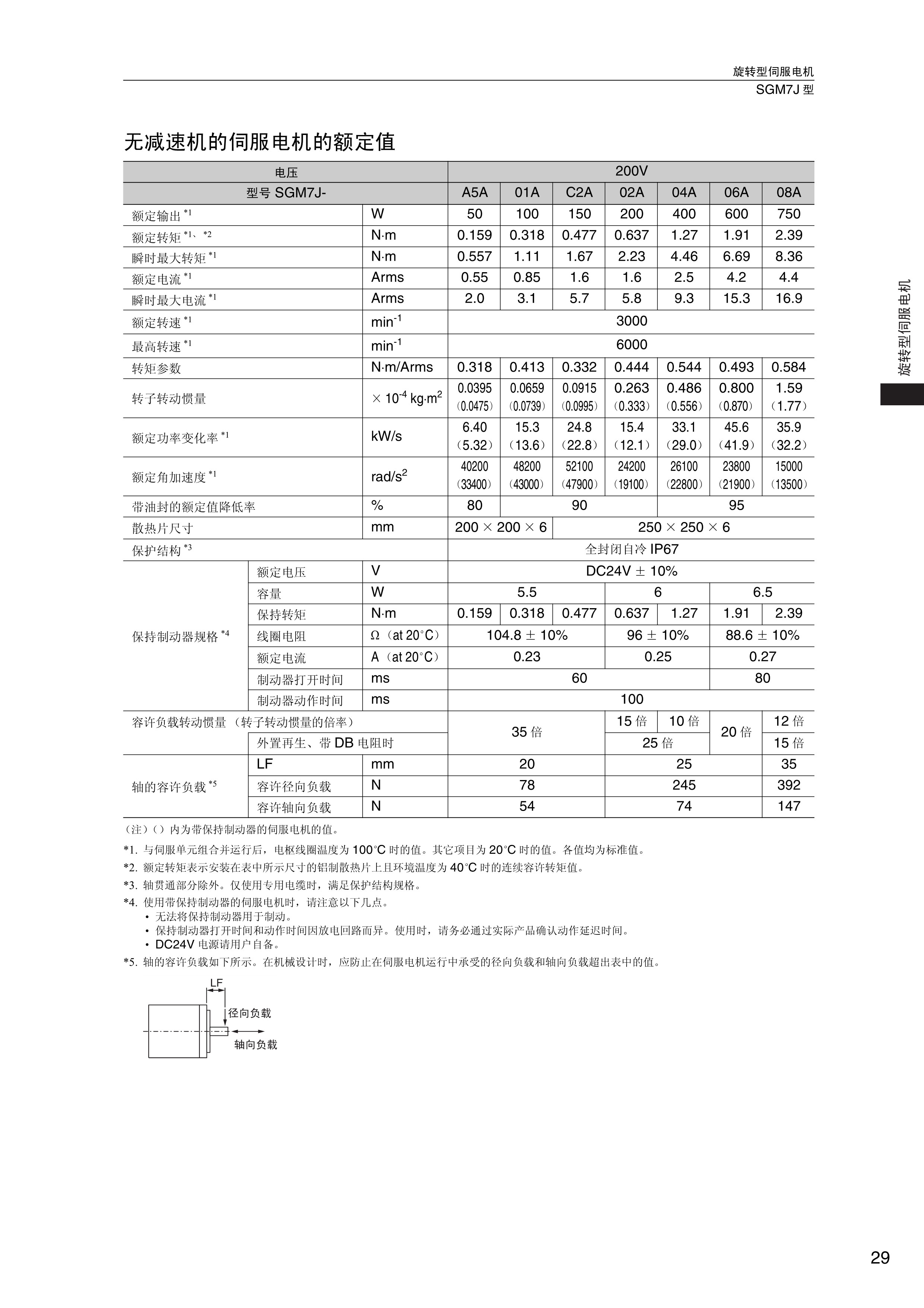 FX安川伺服电机 无减速机的伺服电机的额定值,旋转型伺服电机SGM7J型