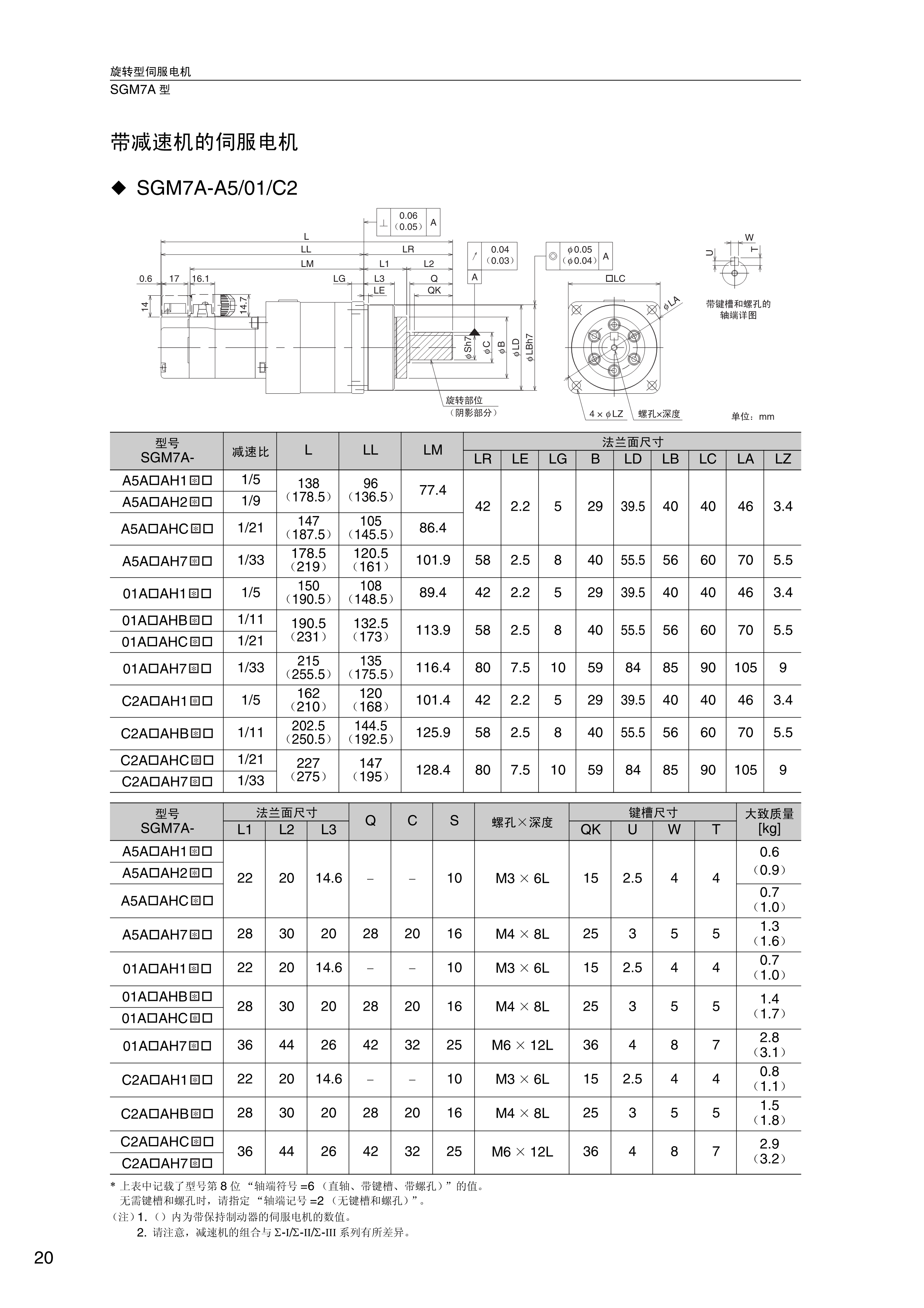 FX安川伺服电机 带减速机的伺服电机SGM7A-A5/01/C2,旋转型伺服电机 SGM7A型