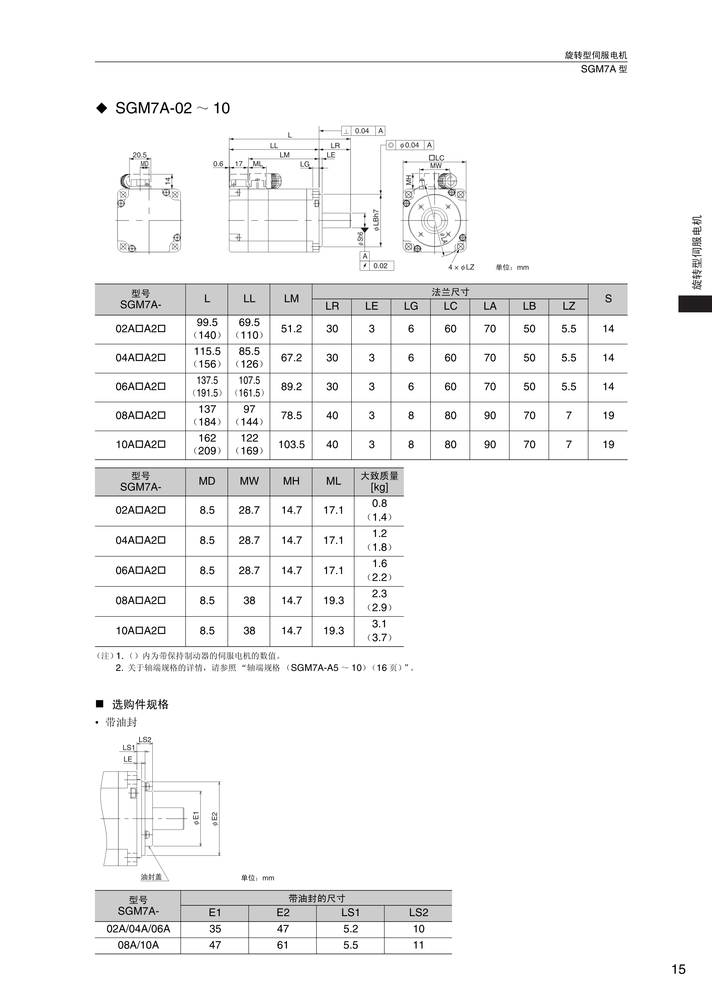 FX安川伺服电机 SGM7A-02,选购件规格,带油封,旋转型伺服电机SGM7A型