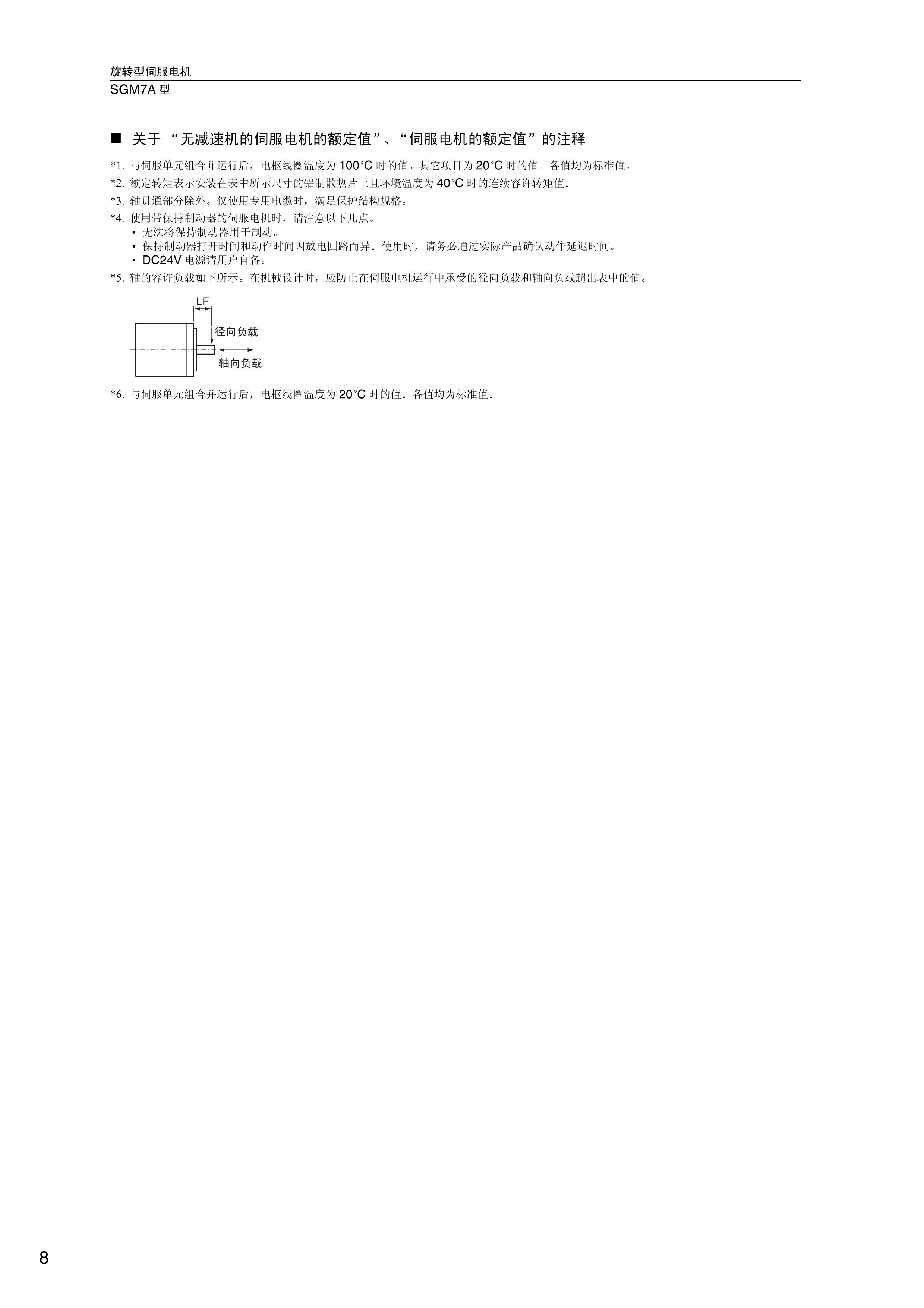 FX安川伺服电机 关于无减速机的伺服电机的额定值,伺服电机的额定值的注释,旋转型伺服电机SGM7A型